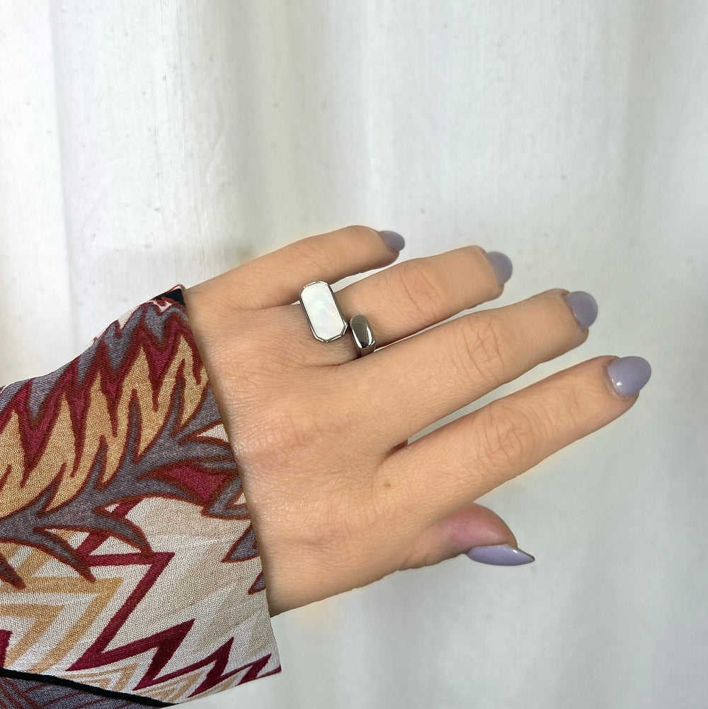 Ιδιαίτερο δαχτυλίδι με ξεχωριστό σχεδιασμό από ανοξείδωτο ατσάλι και φίλντισι. Μπορείτε να διαλέξετε από δύο αποχρώσεις την ζεστή απόχρωση του χρυσού ή την κλασσική γοητεία του ασημιού. Ιδανικό για να συνδυαστεί με άλλα κοσμήματα για ένα δυνατό combo.