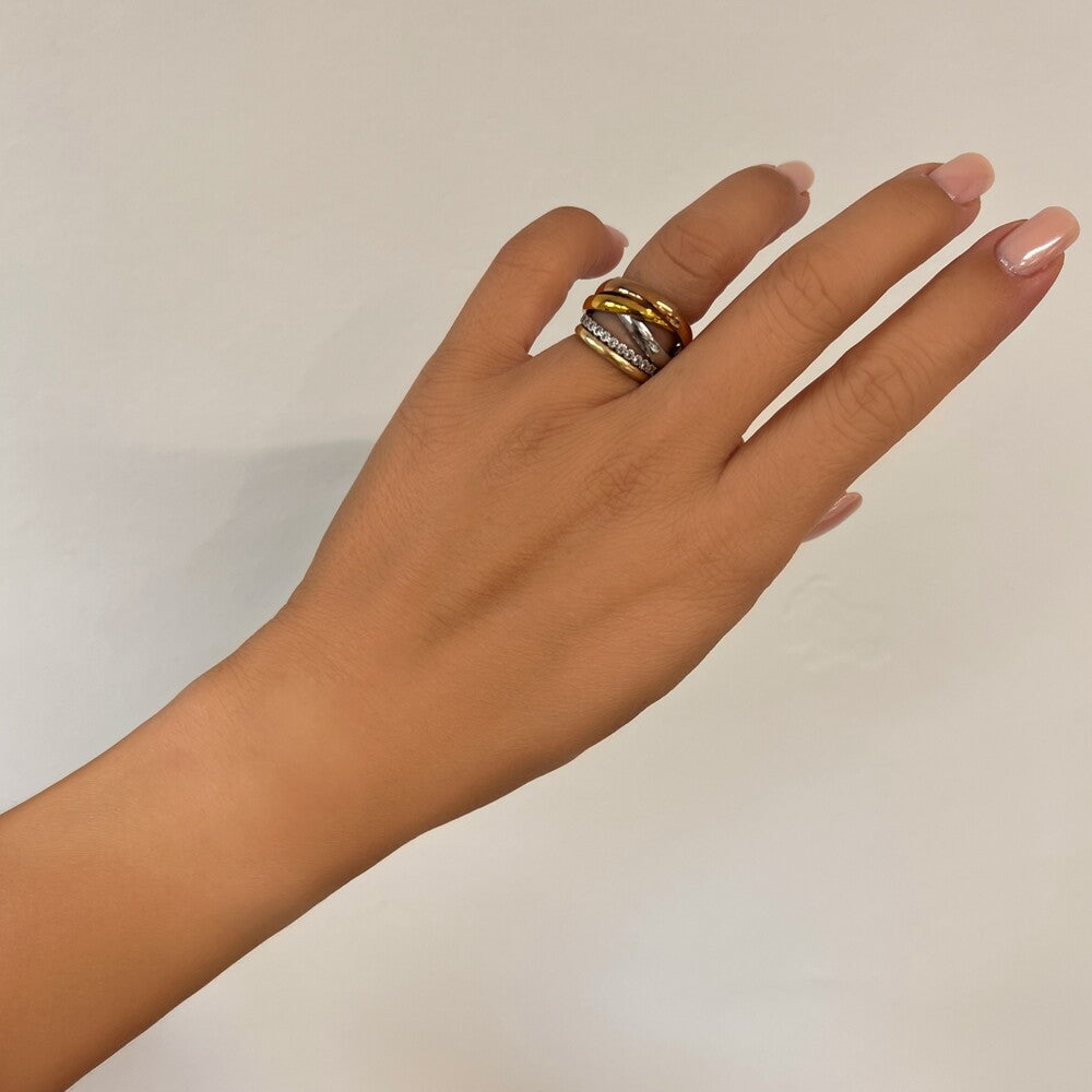 Το σχέδιο του δαχτυλιδιού έχει ιδιαίτερη φινέτσα. Αυτό το τριπλό δαχτυλίδι αποτελεί την τέλεια προσθήκη για να αναδείξετε το στυλ σας με μια νότα κομψότητας.