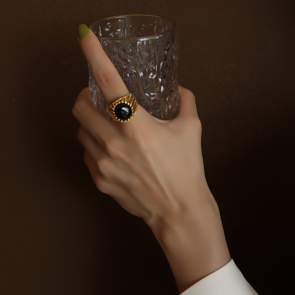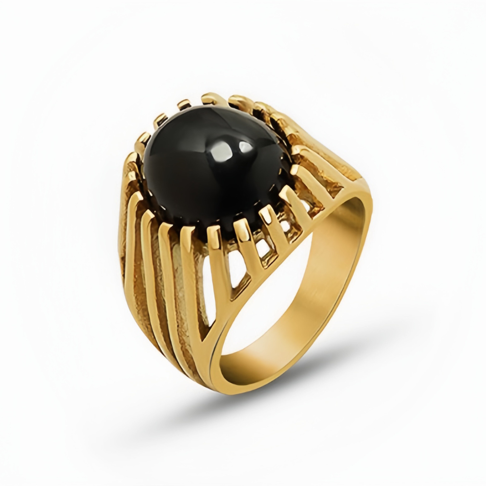 Δαχτυλίδι από ατσάλι με μαύρο όνυχα, που διατίθεται σε τρεις διαμέτρους και προσθέτει μια vintage νότα στο στιλ σας.