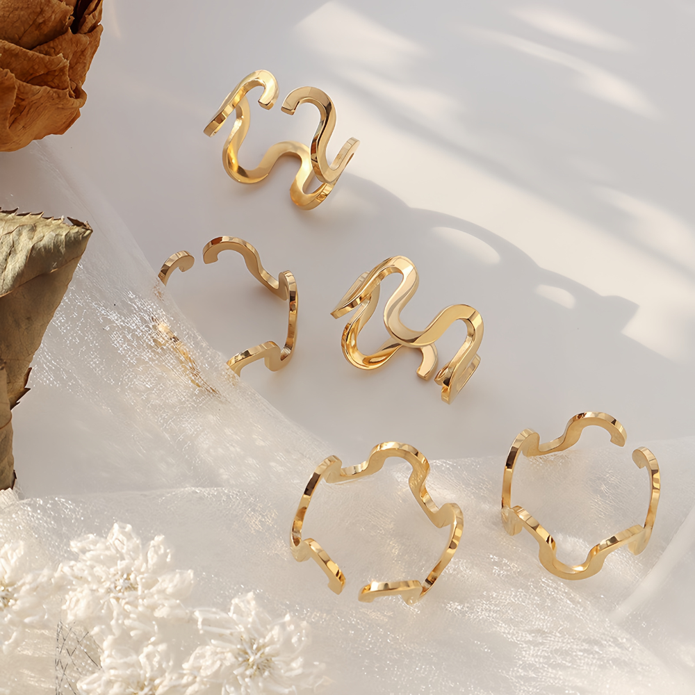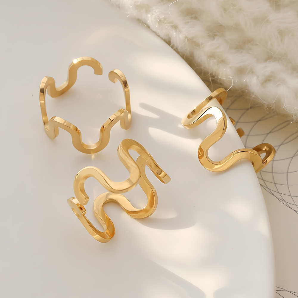 Δαχτυλίδι με κυματιστό σχεδιασμό από ατσάλι επιχρυσωμένο με 18Κ, που προσθέτει πολύ στυλ και είναι ιδανικό για πολλούς συνδυασμούς. Ένα είναι σίγουρό δεν περνάτε απαρατήρητη φορώντας το.