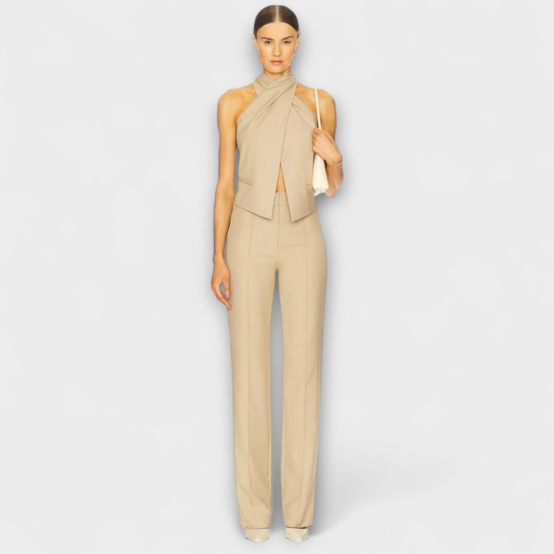 Objavte dokonalú kombináciu štýlu a rafinovanosti s naším krížovým halter topom. Tento štíhly a moderný kúsok je vyrobený z ľahkej twill tkaniny a poskytuje pohodlie bez obetovania elegancie.