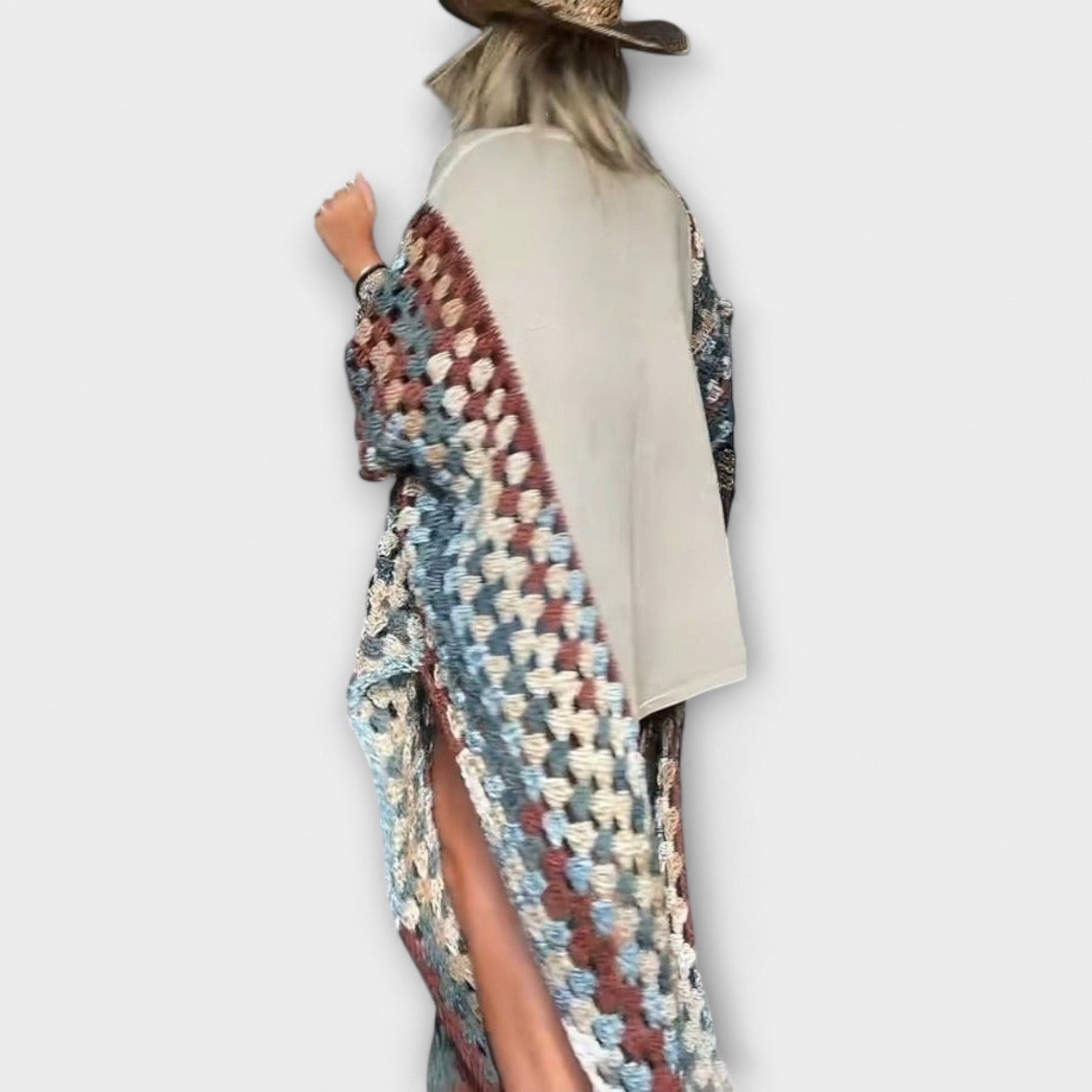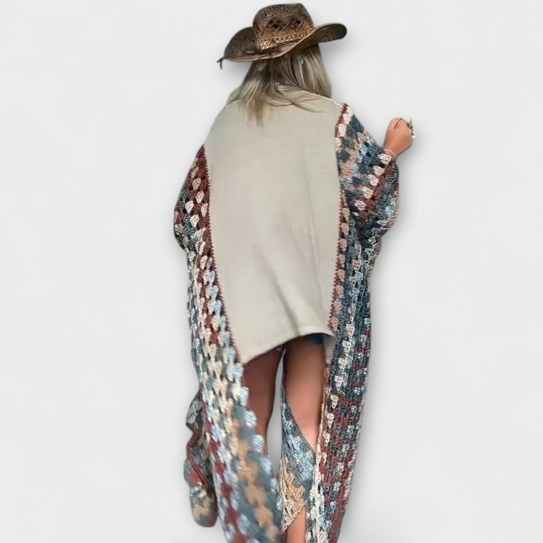• Kreatívny dizajn rukávov: Dlhé vnútorné háčkované rukávy dodávajú neočakávaný objem a pohyb.