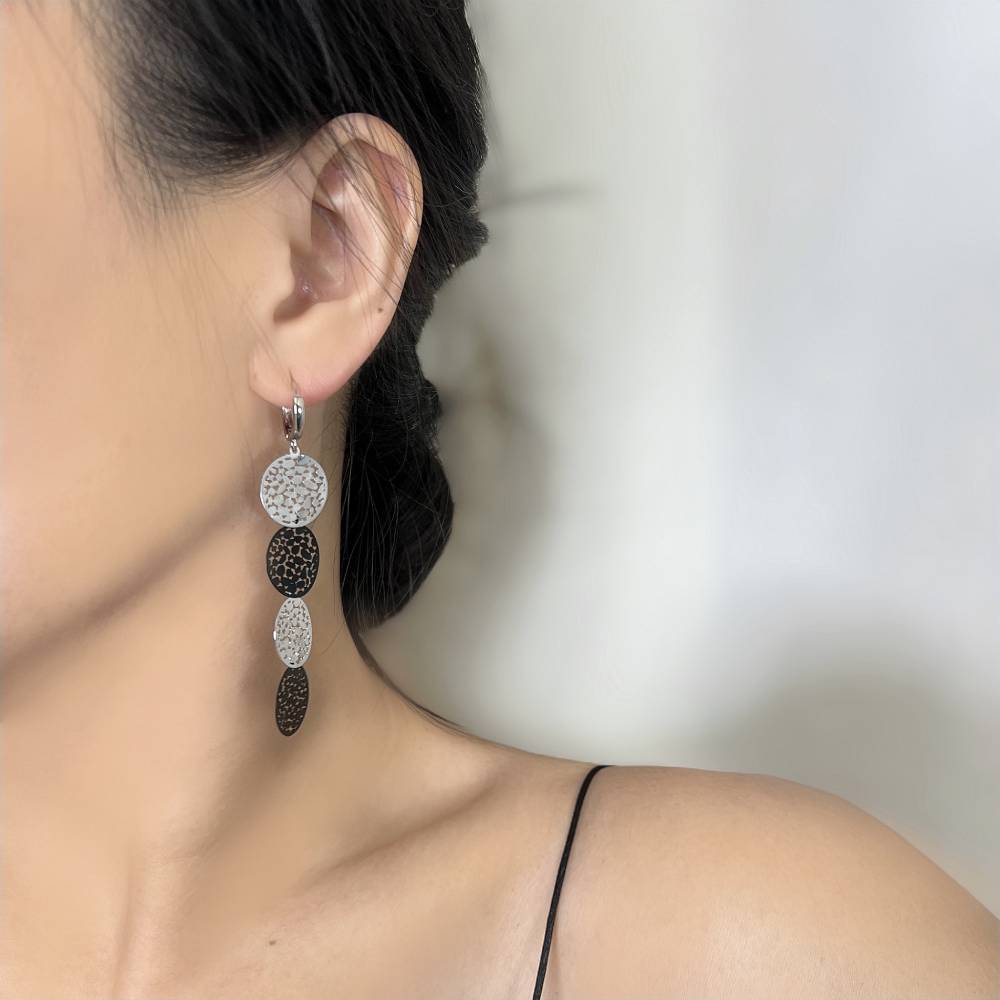 Ατσάλινα μακρία σκουλαρίκια σε στρογγυλό σχήμα, θα δώσουν κίνηση στο outfit σας και θα σας κανουν να εντυπωσιάσετε.