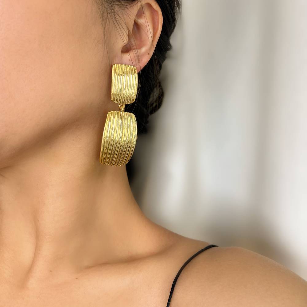 Εξαιρετικά κρεμαστά σκουλαρίκια, πολύ εντυπωσιακά, αναδεικνύεται το στιλ σας με ένα μόνο αξεσουάρ. Είναι ελαφριά δεν θα σας βαρύνουν. Το επιχρυσωμένο ατσάλι με το οποίο είναι φτιαγμένα είναι πολύ ανθεκτικό και δεν προκαλεί αλλεργίες.