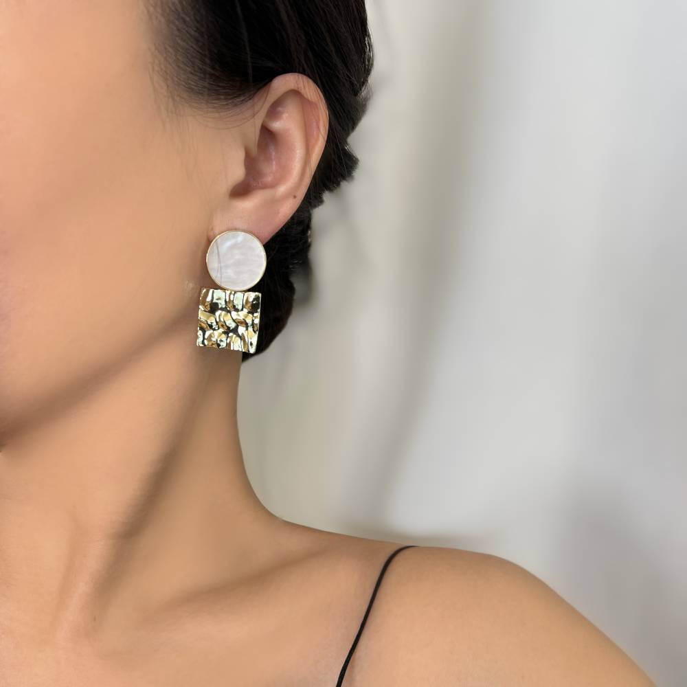 Ατσάλινα σκουλαρίκια σε γεωμετρικά σχέδια, είνια διαθέσιμα σε δυο χρώματα άσπρο και μαύρο, χρώματα που συνδυάζονται με πολλά outfit αναλόγως την προτίμηση σας.
