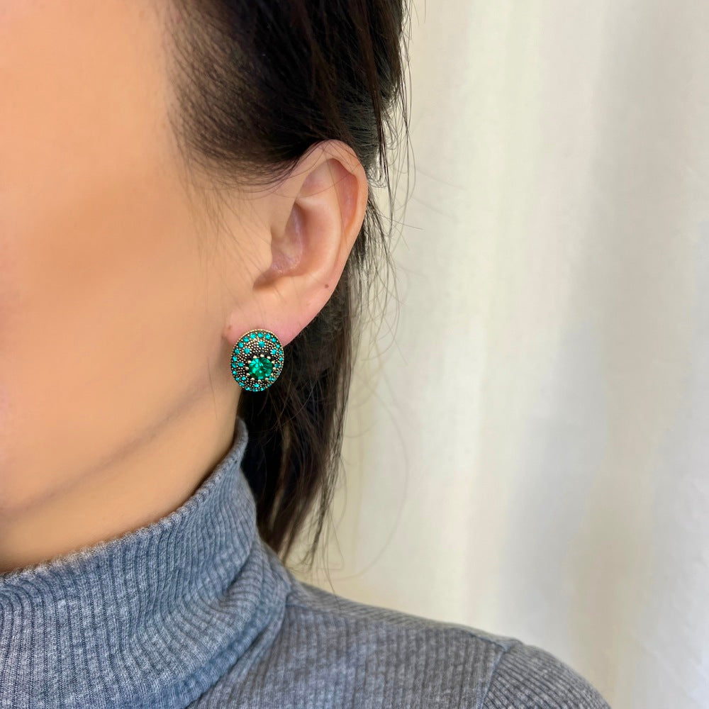 Κατασκευασμένο από ανοξείδωτο ατσάλι επιχρυσωμένο με 18Κ, ένα εντυπωσιακό ζευγάρι σκουλαρίκια με τη λάμψη ενός κεντρικού ζιργκόν, αλλά και πολλών μικρότερων περιμετρικά. Ένα ζευγάρι σκουλαρίκια που θα σας κάνει να λάμπετε, με το εξαιρετικό πράσινο χρώμα των ζιργκόν.