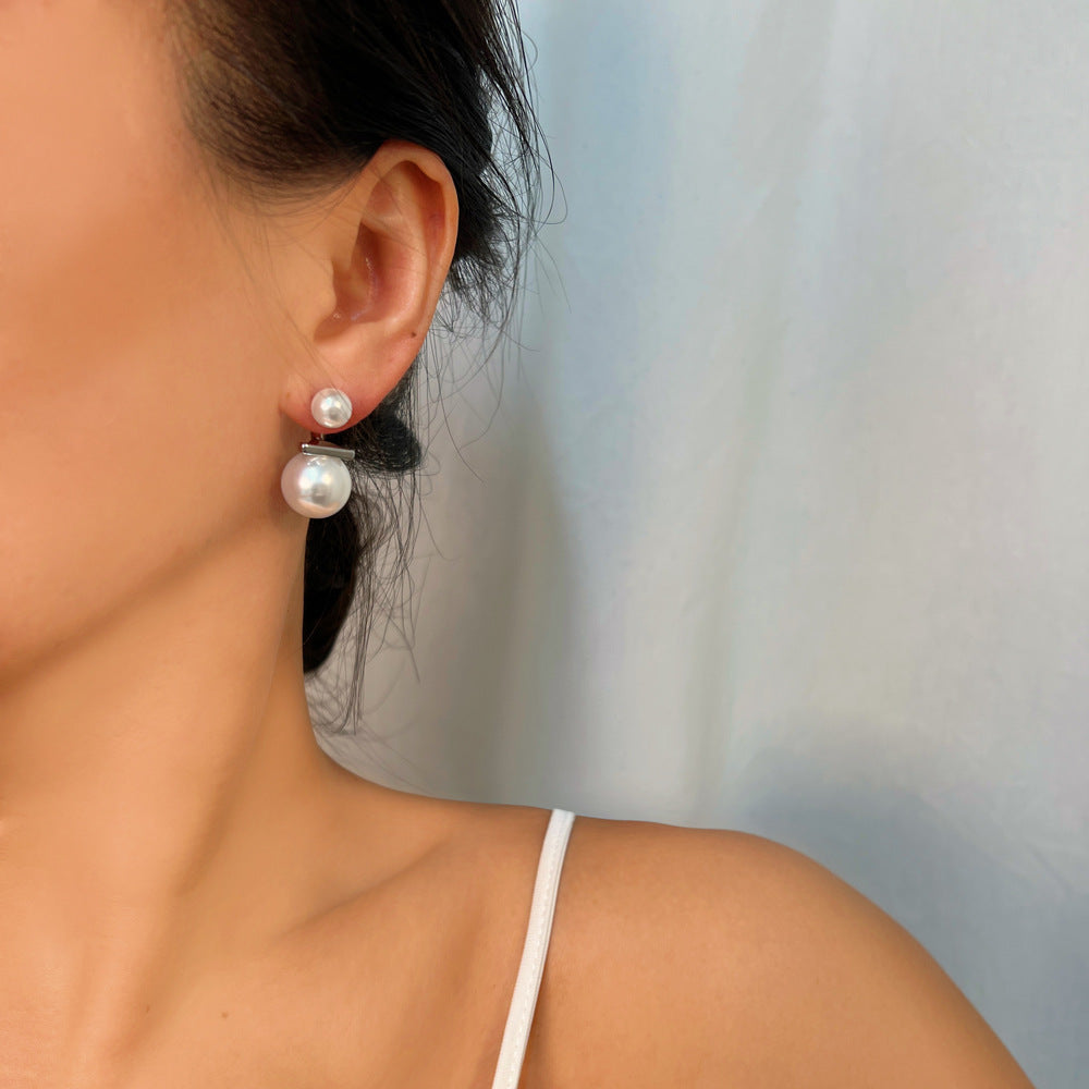 Εντυπωσιακά σκουλαρίκια με μαργαριτάρι σε εκπληκτικό και μοντέρνο σχέδιο. Είναι κατασκευασμένα απο ανοξείδωτο ατσάλι επιχρυσωμένο.