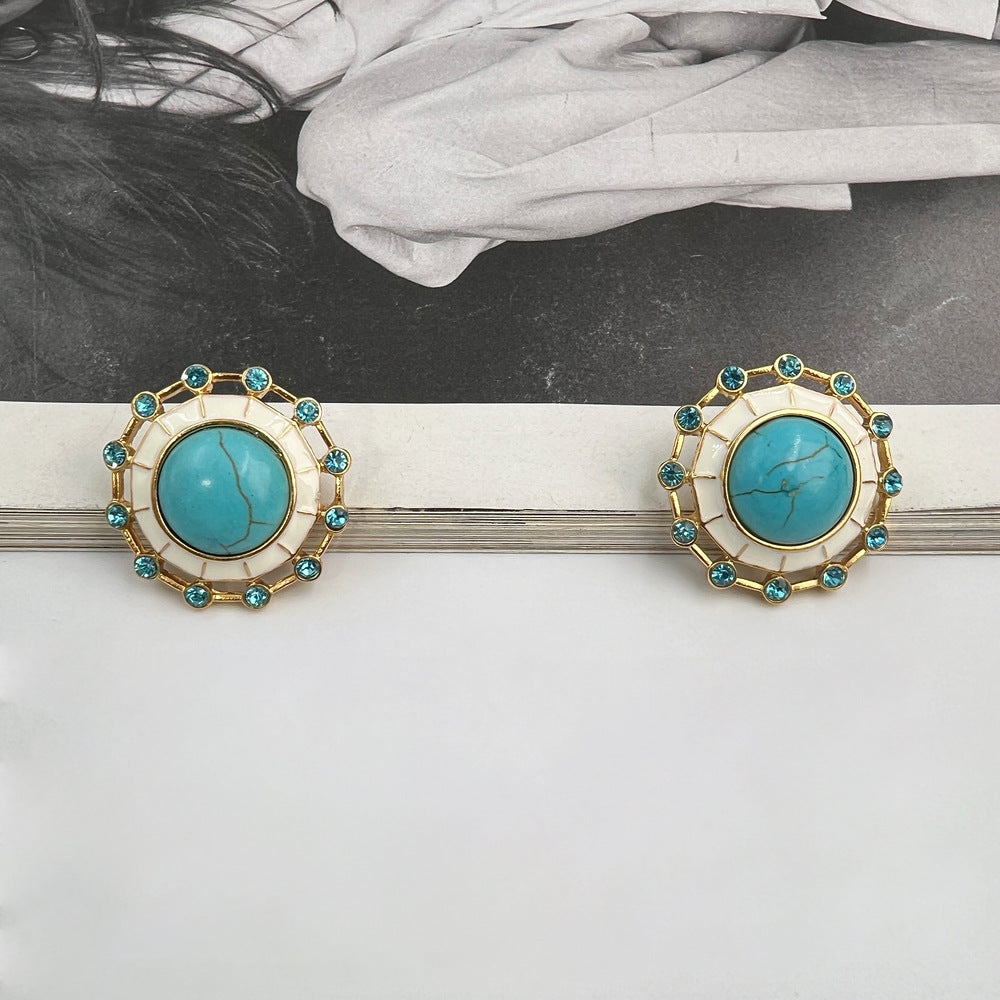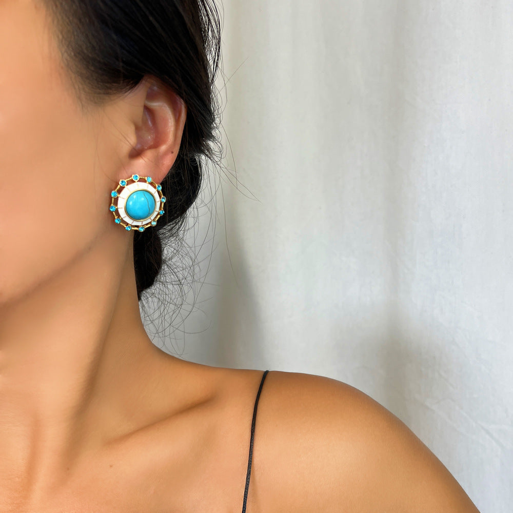 Εκπληκτικά σκουλαρίκια με τυρκουάζ, κατασκευασμένα από ανοξείδωτο ατσάλι επιχρυσωμένο, φοριούνται άνετα όλη την ημέρα καθώς είναι πολύ ελαφριά. Ένα κομψό ζευγάρι σκουλαρίκια που θα σας κάνει να ξεχωρίζετε.