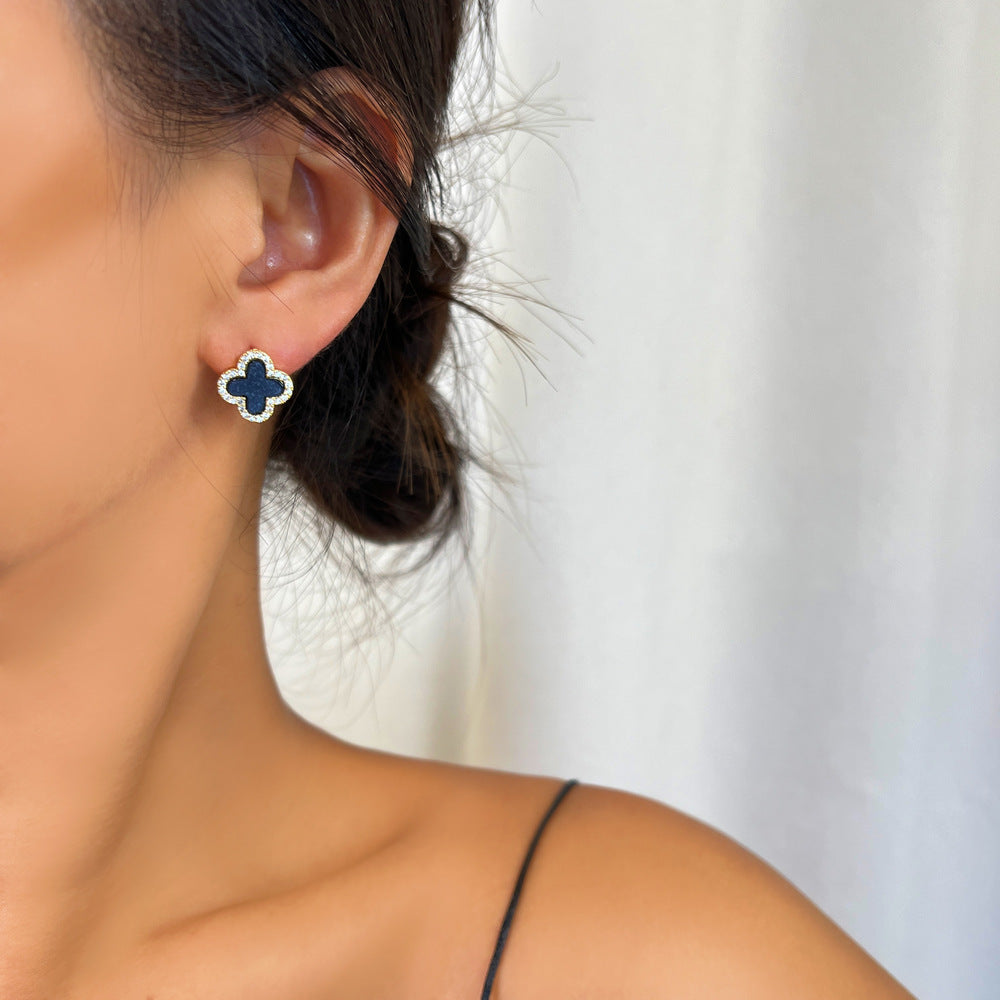 Εκπληκτικά σκουλαρίκια σε σχέδιο four leaf από ανοξείδωτο ατσάλι επιχρυσωμένο 18Κ με ζιργκόν. Φοριούνται άνετα από το πρωί ως το βράδυ για να συμπληρώσουν το outfit σας.