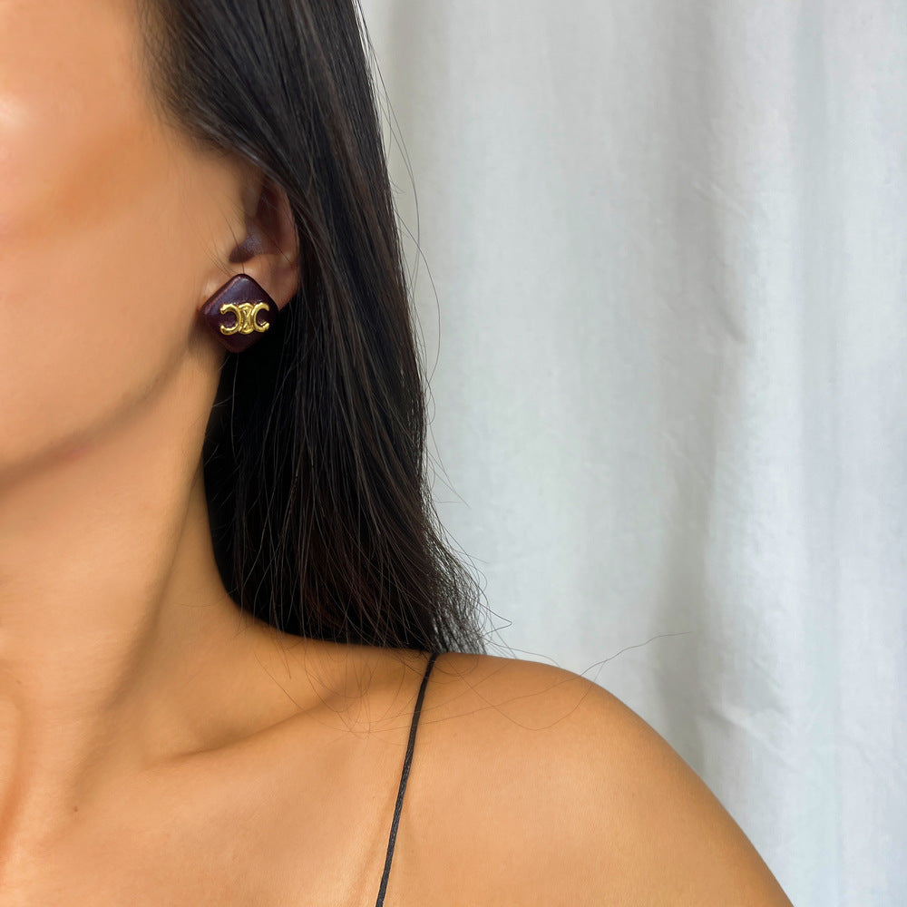 Ιδιαίτερα σκουλαρίκια σε σχήμα διαμαντιού απο ανοιξείδωτο ατσάλι με δερματίνη σε μπορντώ χρώμα. Χαρίζουν μια έξτρα πινελιά κομψότητας στις εμφανίσεις σας.