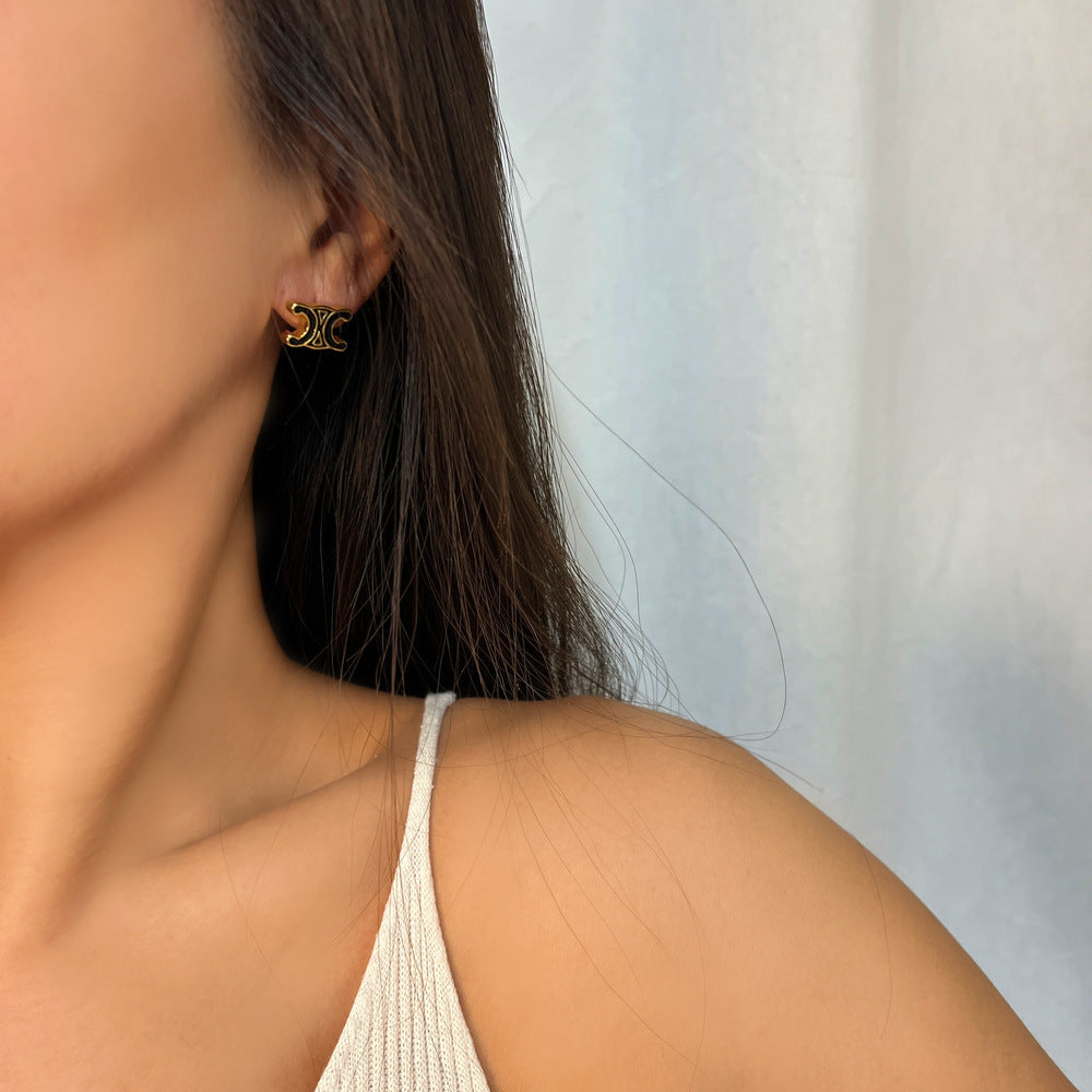 Κατασκευασμένο από ανοξείδωτο ατσάλι επιχρυσωμένο με σμάλτο στο σχέδιο του. Ένα ιδιαίτερο ζευγάρι σκουλαρίκια που θα απογειώσει το στυλ σας.