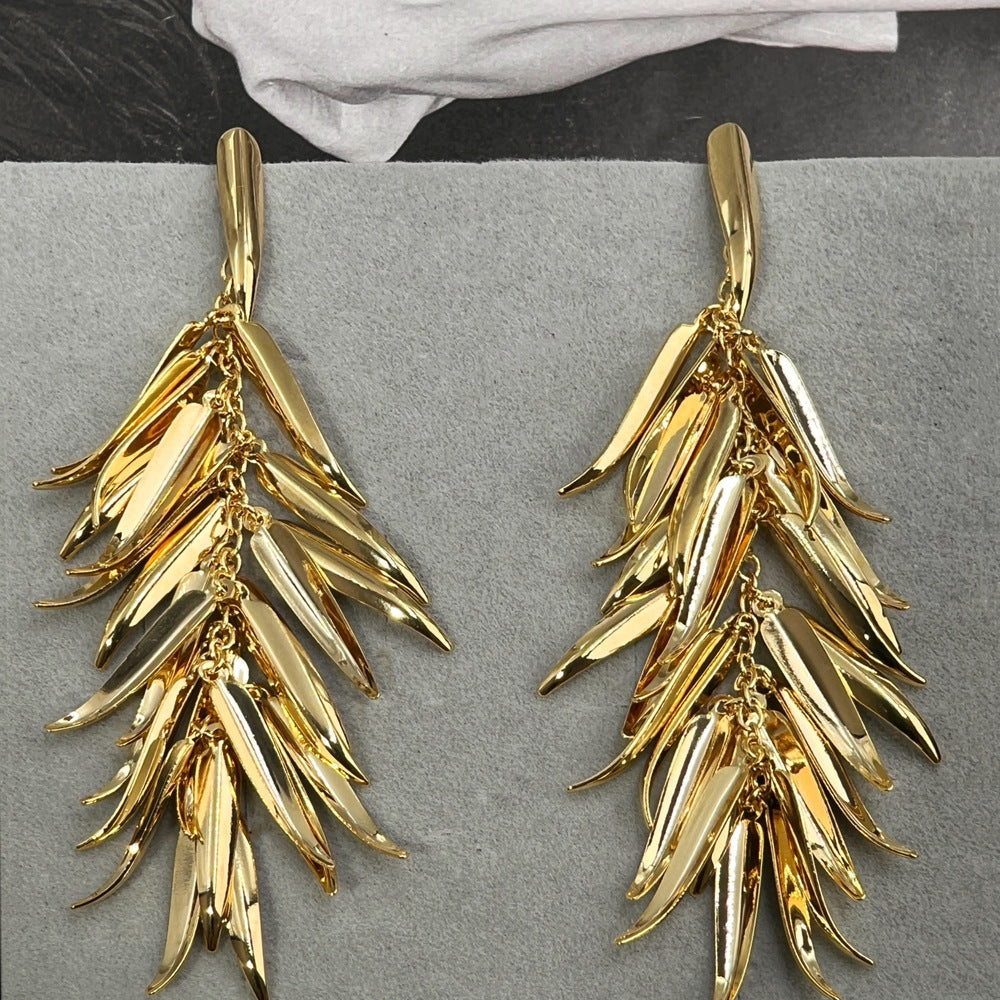 Άκρως εντυπωσιακό ζευγάρι σκουλαρικών με ιδιαίτερο σχέδιο που θα τραβήξει τα βλέμματα πάνω σας, είναι ιδανικό για τις γιοτρινές σας εμφανίσεις. Μια πινελιά που θα απογειώσει το στυλ σας.