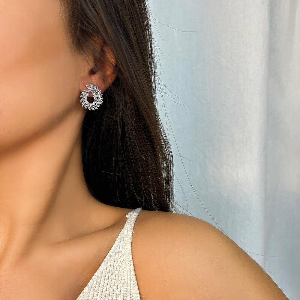 Υπέρλαμπρο ζευγάρι με ξεχωριστό σχέδιο, κατασκευασμένο από ανοξείδωτο ατσάλι επιχρυσωμένο και ζιργκόν. Ένα εντυπωσιακό ζευγάρι σκουλαρίκια που θα απογειώσει το στυλ σας.