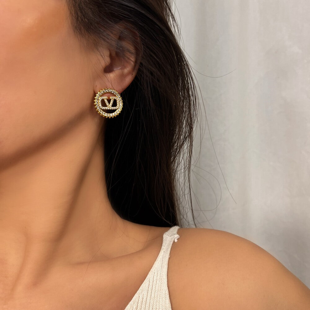 Υπέρκομψο ζευγάρι σε ιδιαίτερο σχέδιο, κατασκευασμένο από ανοξείδωτο ατσάλι επιχρυσωμένο με ζιργκόν. Ένα εντυπωσιακό ζευγάρι σκουλαρίκια που θα απογειώσει το στυλ σας.