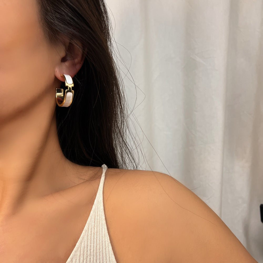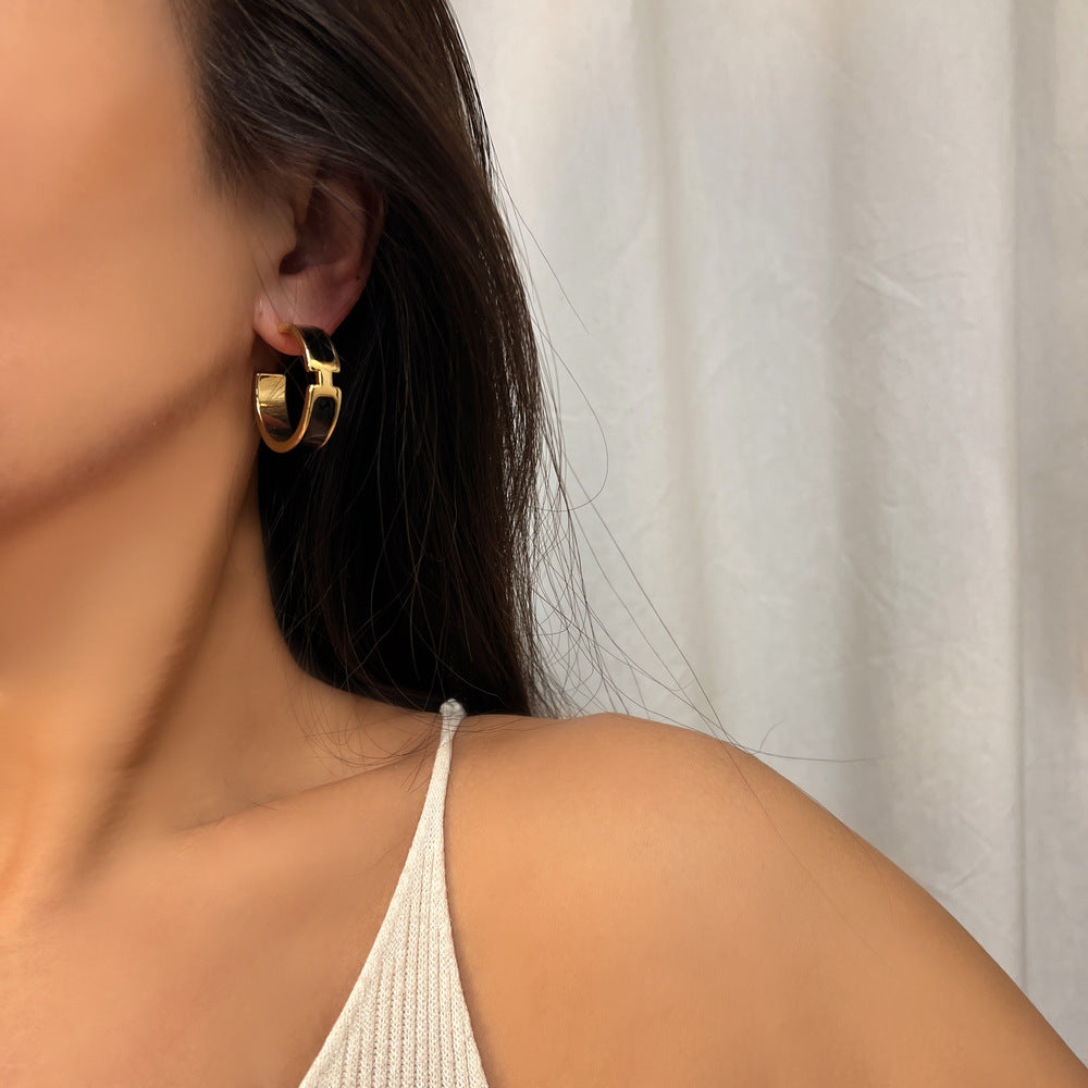 Πολύ ελαφριοί κρίκοι που φοριούνται άνετα όλη τη διάρκεια της μέρας, κατασκευασμένοι από ανοξείδωτο ατσάλι επιχρυσωμένο με σμάλτο. Ένα ζευγάρι σκουλαρίκια που ενισχύει το στυλ μας, διαθέσιμο σε δυο χρώματα.
