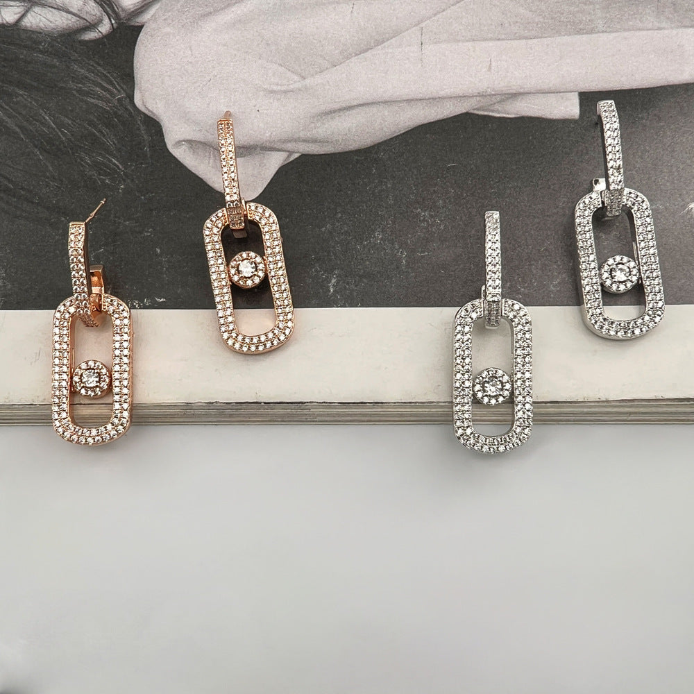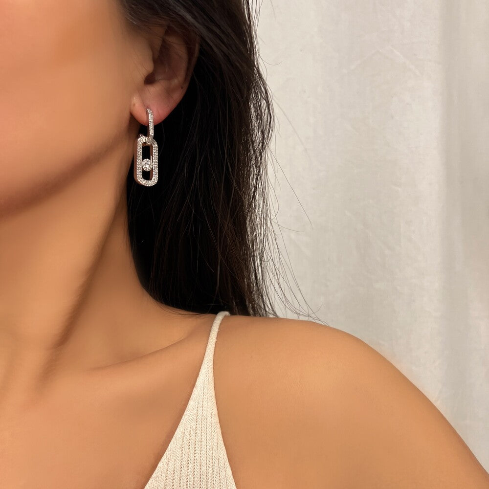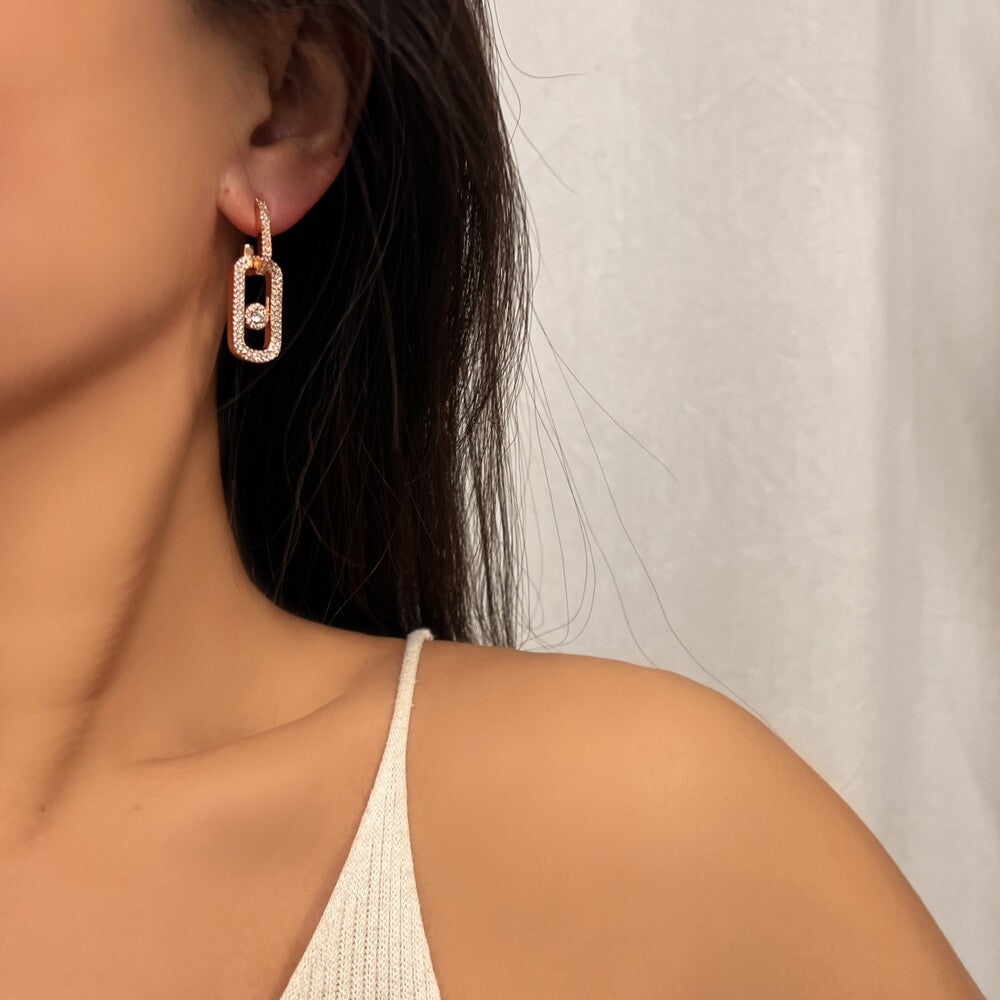 Κρεμαστά σκουλαρίκια με ζιργκόν που τους δίνουν λάμψη. Φοριούνται άνετα όλη τη διάρκεια της μέρας, είναι κατασκευασμένα από ανοξείδωτο ατσάλι επιχρυσωμένο. Ένα ζευγάρι σκουλαρίκια που αναδεικνύει την εμφανισή σας.