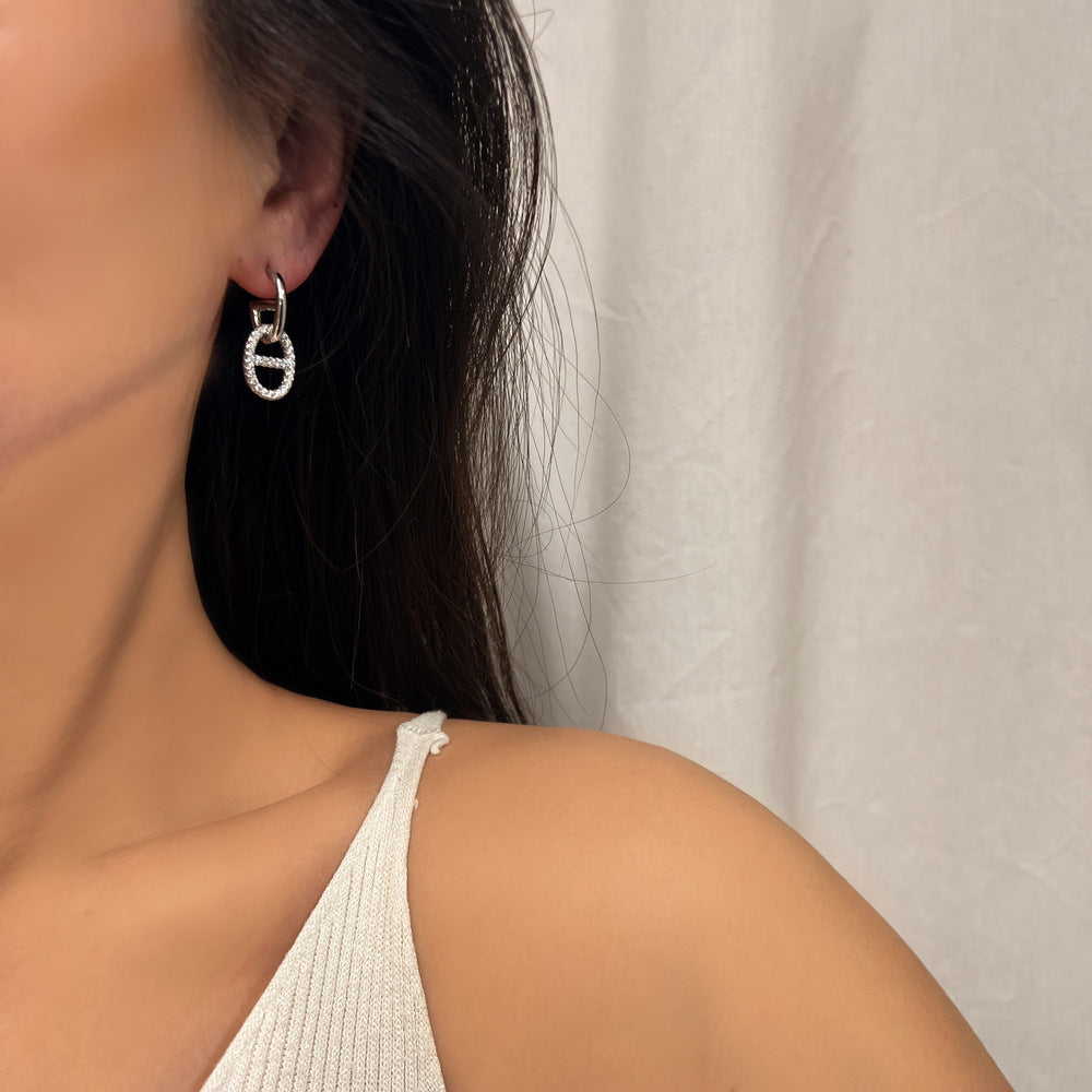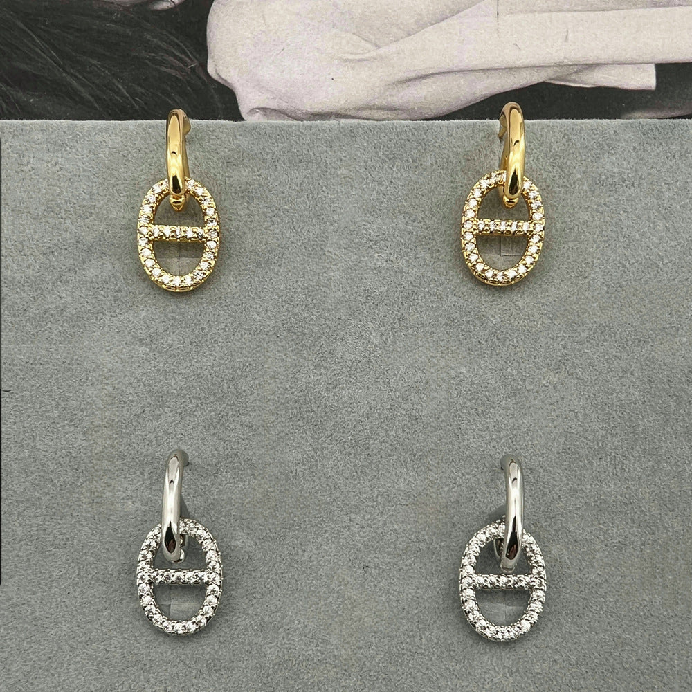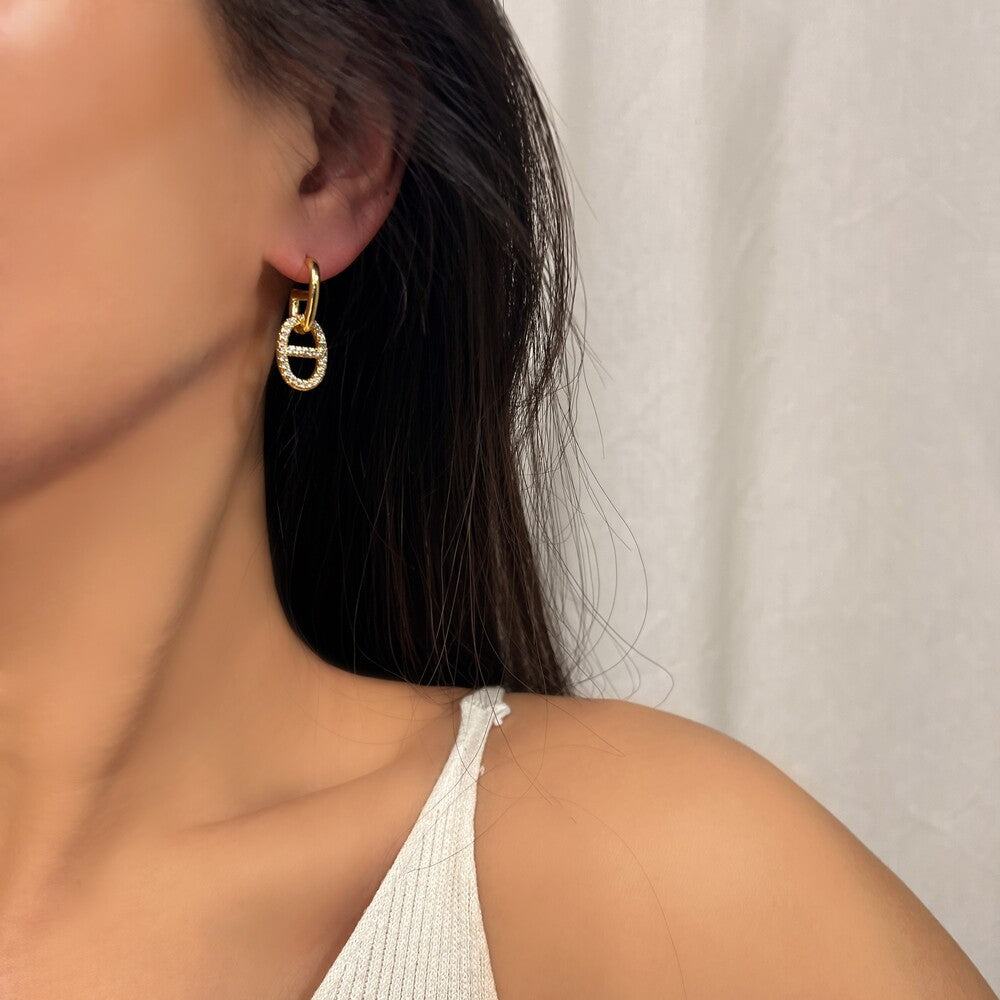 Κρεμαστό σκουλαρίκι κατασκευασμένο από ανοξείδωτο ατσάλι επιχρυσωμένο με ζιργκόν. Ένα ιδιαίτερο ζευγάρι σκουλαρίκια που θα απογειώσει το στυλ σας.