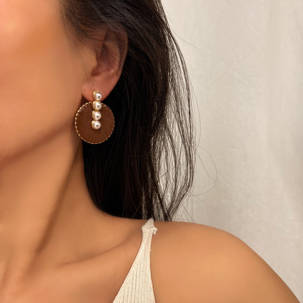 Εντυπωσιακά σκουλαρίκια απο ατσάλι επιχρυσωμένο με μαργαριτάρια και σμάλτο που θα αναδείξουν την εμφάνιση σας με το ιδιαίτερο σχέδιο τους.