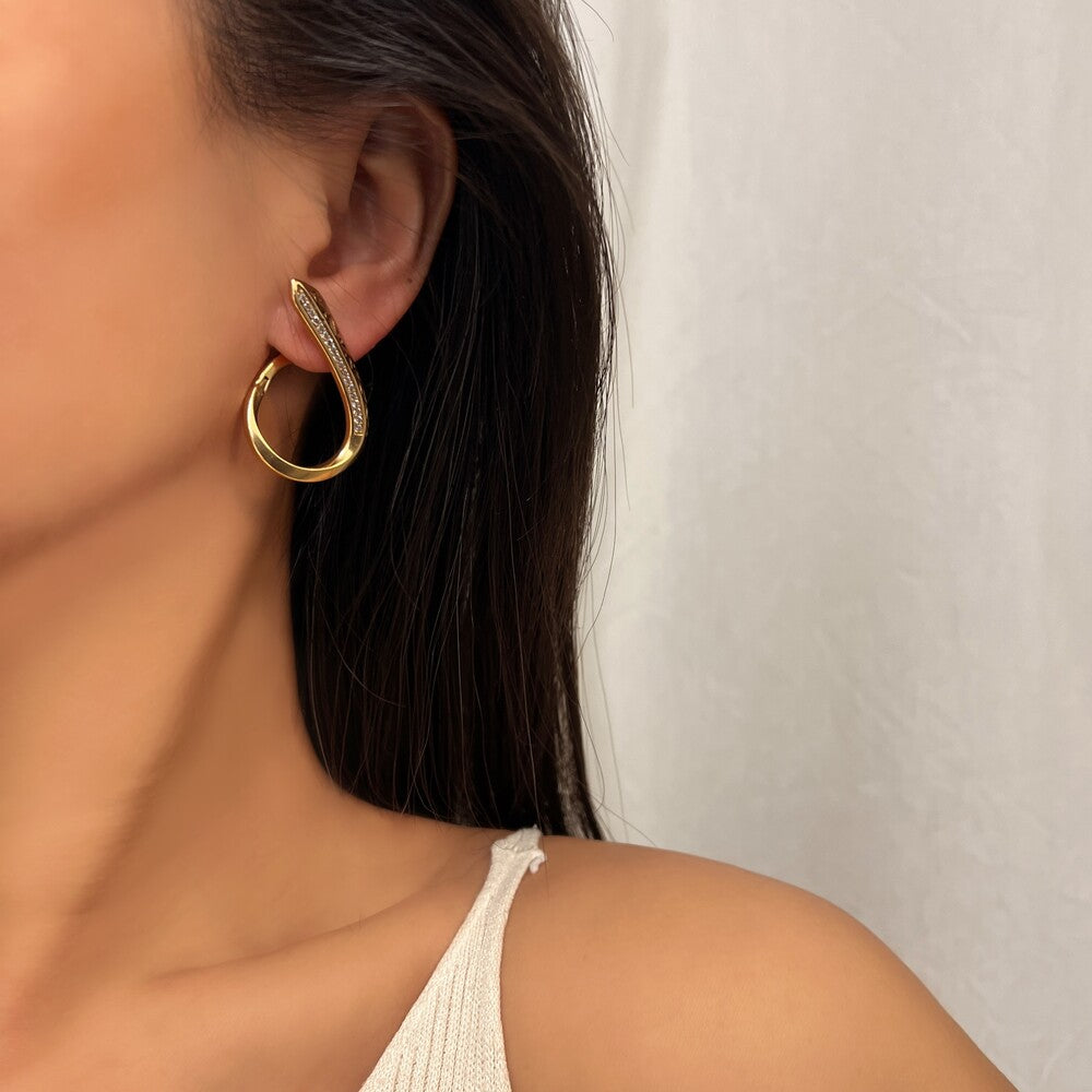 Εντυπωσιακά σκουλαρίκια απο ατσάλι επιχρυσωμένο με ζιργκόν που θα αναδείξουν την εμφάνιση σας με το ιδιαίτερο σχέδιο τους.
