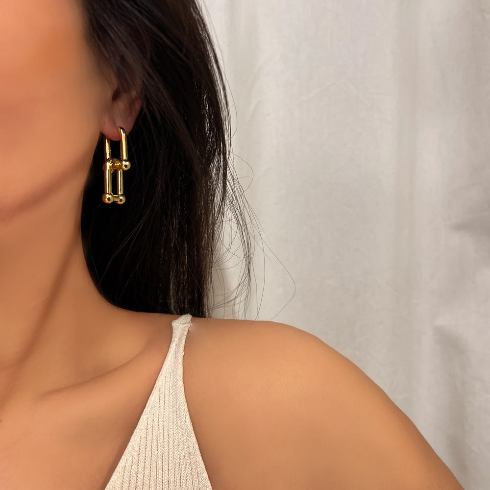 Εντυπωσιακά σκουλαρίκια απο ατσάλι επιχρυσωμένο. Ένα ζευγάρι σκουλαρίκια που αναδεικνύει την εμφανισή σας σε εξαιρετικό σχέδιο.