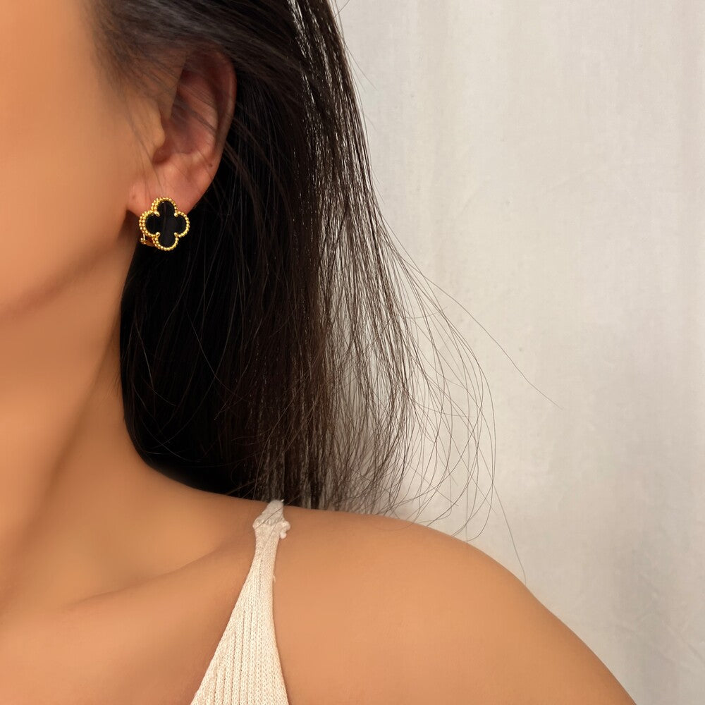 Όμορφο ζευγάρι σκουλαρίκια από ανοξείδωτο ατσάλι επιχρυσωμένο με μαύρο αχάτη. Ένα εντυπωσιακό ζευγάρι σκουλαρίκια που θα απογειώσει το στυλ σας.