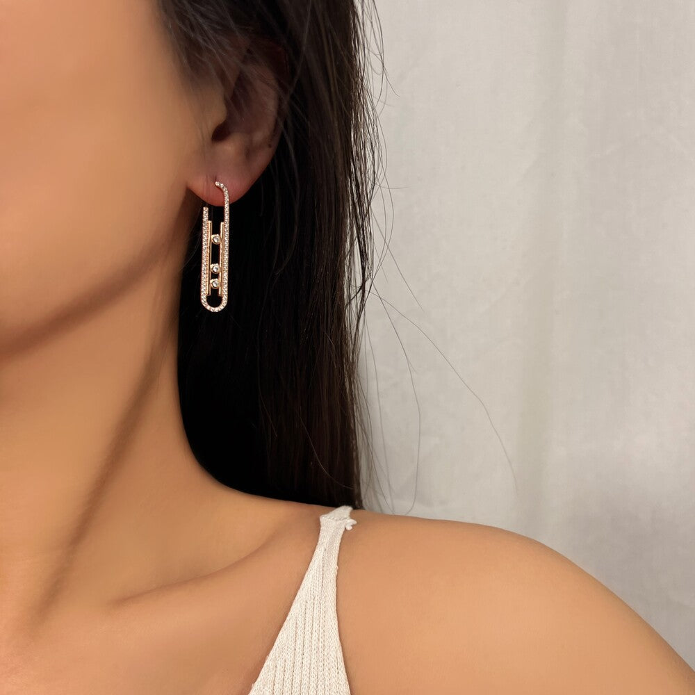 Κρεμαστά σκουλαρίκια με ζιργκόν που τους δίνουν λάμψη. Φοριούνται άνετα όλη τη διάρκεια της μέρας, είναι κατασκευασμένα από ανοξείδωτο ατσάλι επιχρυσωμένο. Ένα ζευγάρι σκουλαρίκια που αναδεικνύει την εμφανισή σας.