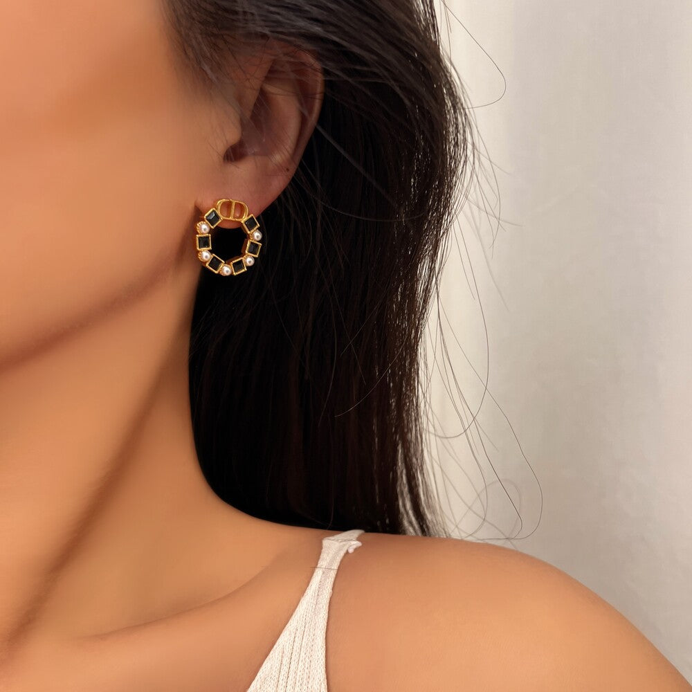 Κατασκευασμένο από ανοξείδωτο ατσάλι επιχρυσωμένο διακοσμημένο με ζιργκόν και μαργαριτάρια. Ένα κομψό ζευγάρι σκουλαρίκια που θα αναδείξει το outfit σας.