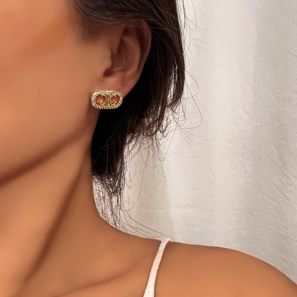 Κατασκευασμένο από ανοξείδωτο ατσάλι επιχρυσωμένο διακοσμημένο με ζιργκόν. Ένα κομψό ζευγάρι σκουλαρίκια που θα αναδείξει το outfit σας.