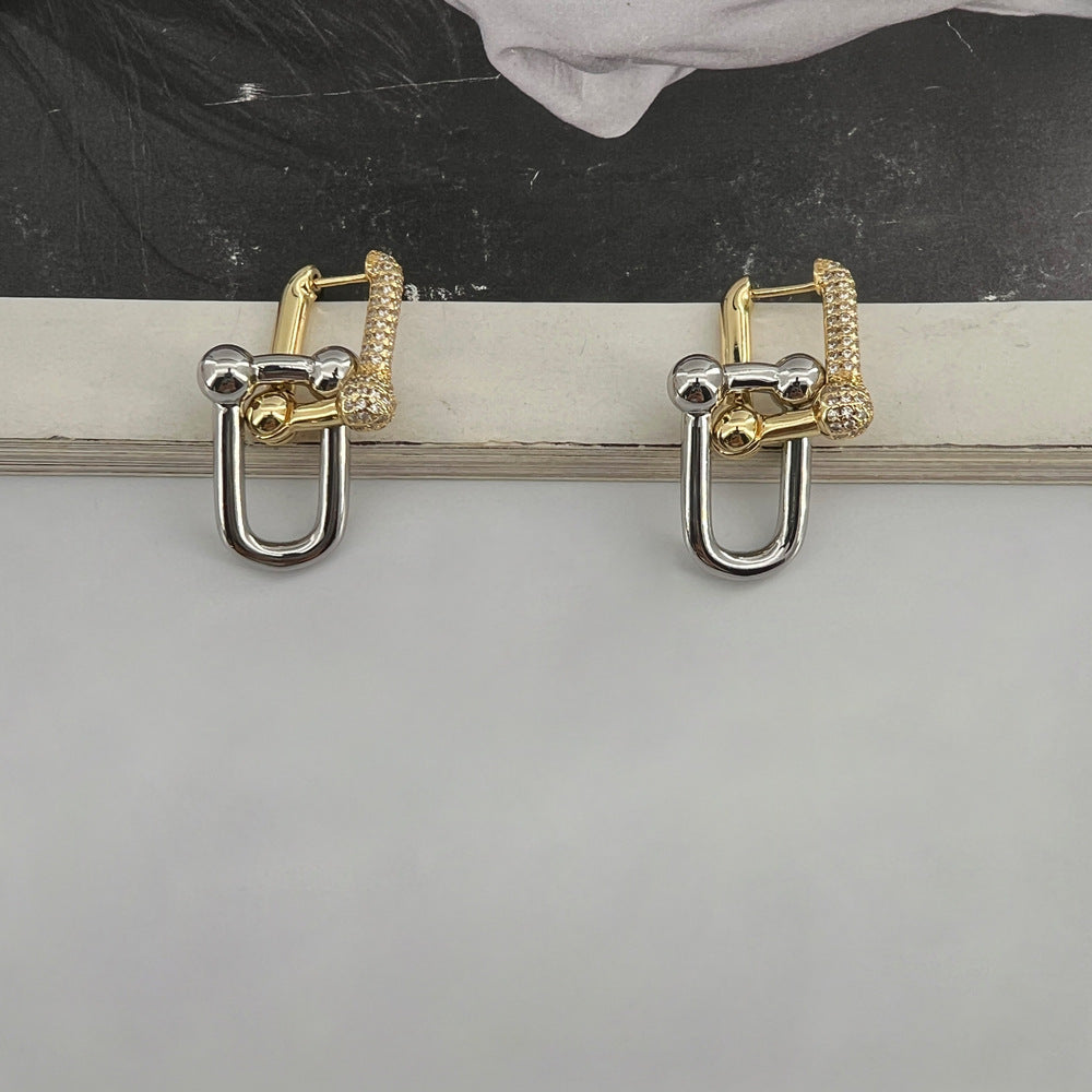 Όμορφο ζευγάρι σκουλαρίκια σε κομψό σχέδιο. Είναι κατασκευασμένο από ανοξείδωτο ατσάλι επιχρυσωμένο με ζιργκόν. Ένα εντυπωσιακό ζευγάρι σκουλαρίκια που θα απογειώσει το στυλ σας.
