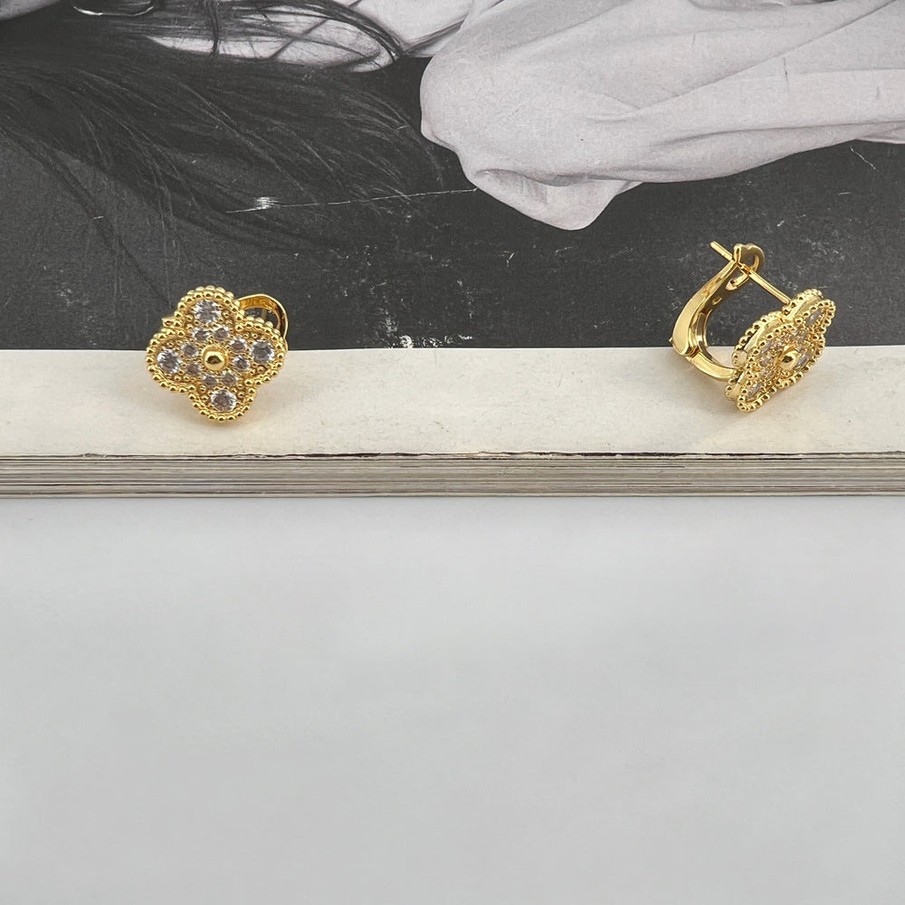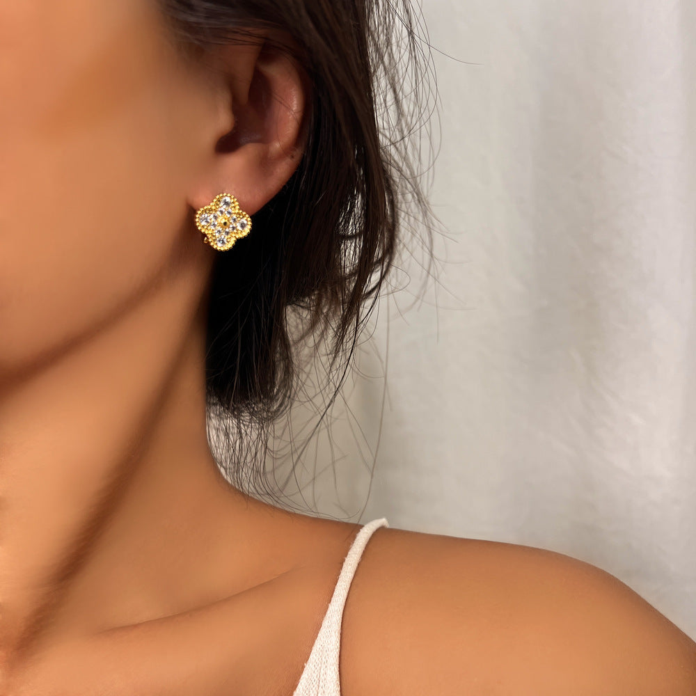 Όμορφο ζευγάρι σκουλαρίκια από ανοξείδωτο ατσάλι επιχρυσωμένο διακοσμημένο με ζιργκόν. Ένα εντυπωσιακό ζευγάρι σκουλαρίκια που θα απογειώσει το στυλ σας.