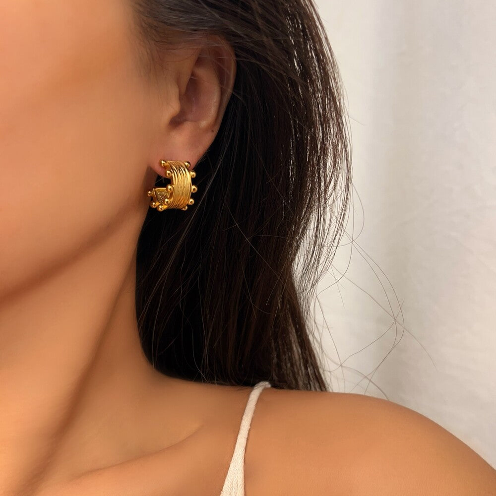 Κρίκοι κατασκευασμένοι από ανοξείδωτο ατσάλι επιχρυσωμένο 18Κ, . Ένα κομψό ζευγάρι σκουλαρίκια που θα αναδείξει το στυλ σας.