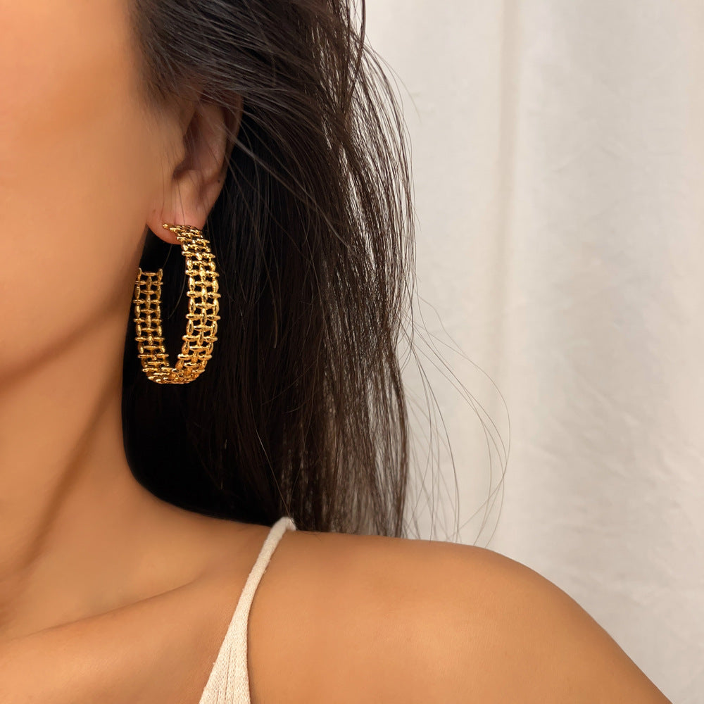 Κρίκοι κατασκευασμένοι από ανοξείδωτο ατσάλι επιχρυσωμένο 18Κ. Ένα κομψό ζευγάρι σκουλαρίκια που θα αναδείξει το στυλ σας.