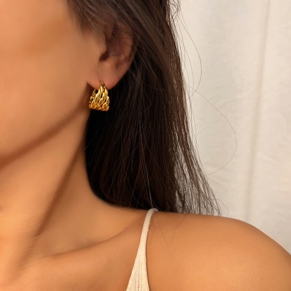 Κρίκοι κατασκευασμένοι από ατσάλι επιχρυσωμένο 18Κ. Ένα κομψό ζευγάρι σκουλαρίκια που θα αναδείξει το στυλ σας.