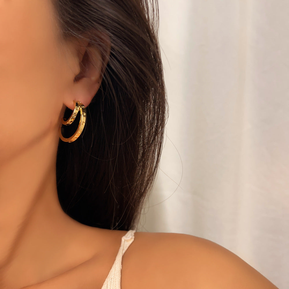 Κρίκοι κατασκευασμένοι από ανοξείδωτο ατσάλι επιχρυσωμένο 18Κ. Ένα κομψό ζευγάρι σκουλαρίκια που θα αναδείξει το στυλ σας.