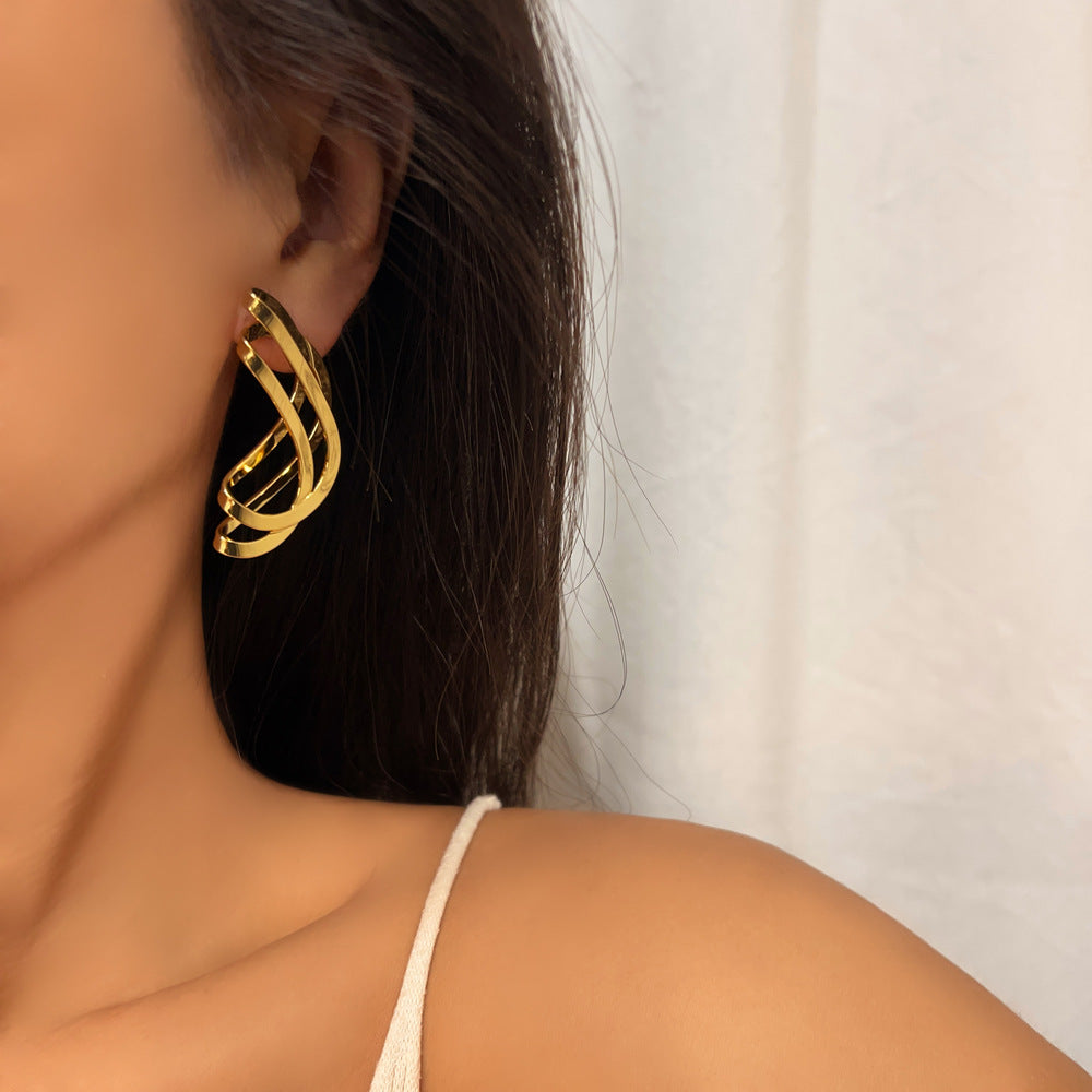 Κατασκευασμένο από ατσάλι επιχρυσωμένο. Ένα κομψό ζευγάρι σκουλαρίκια που θα αναδείξει το outfit σας.