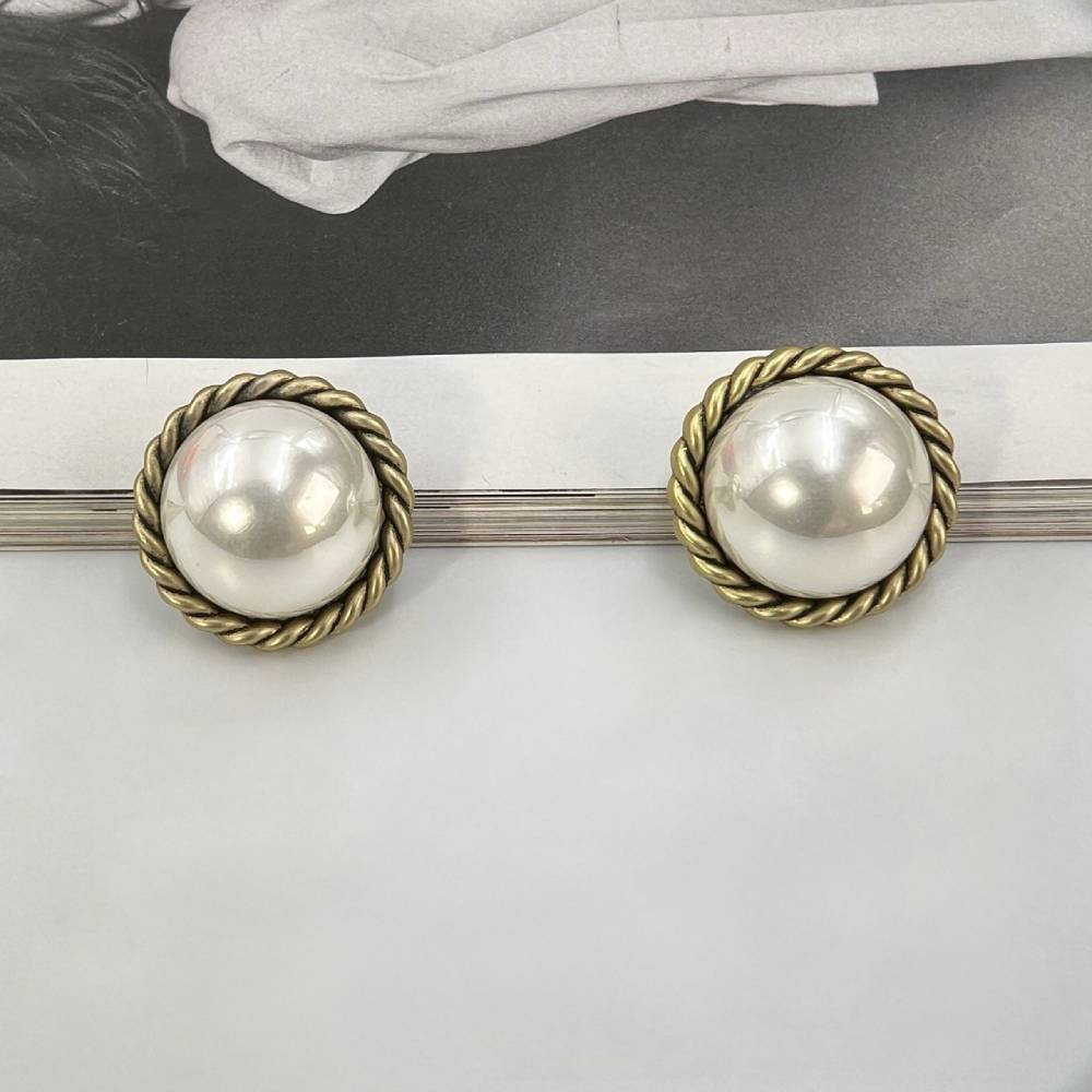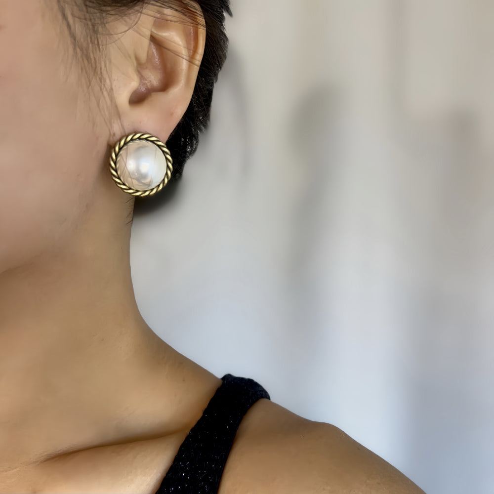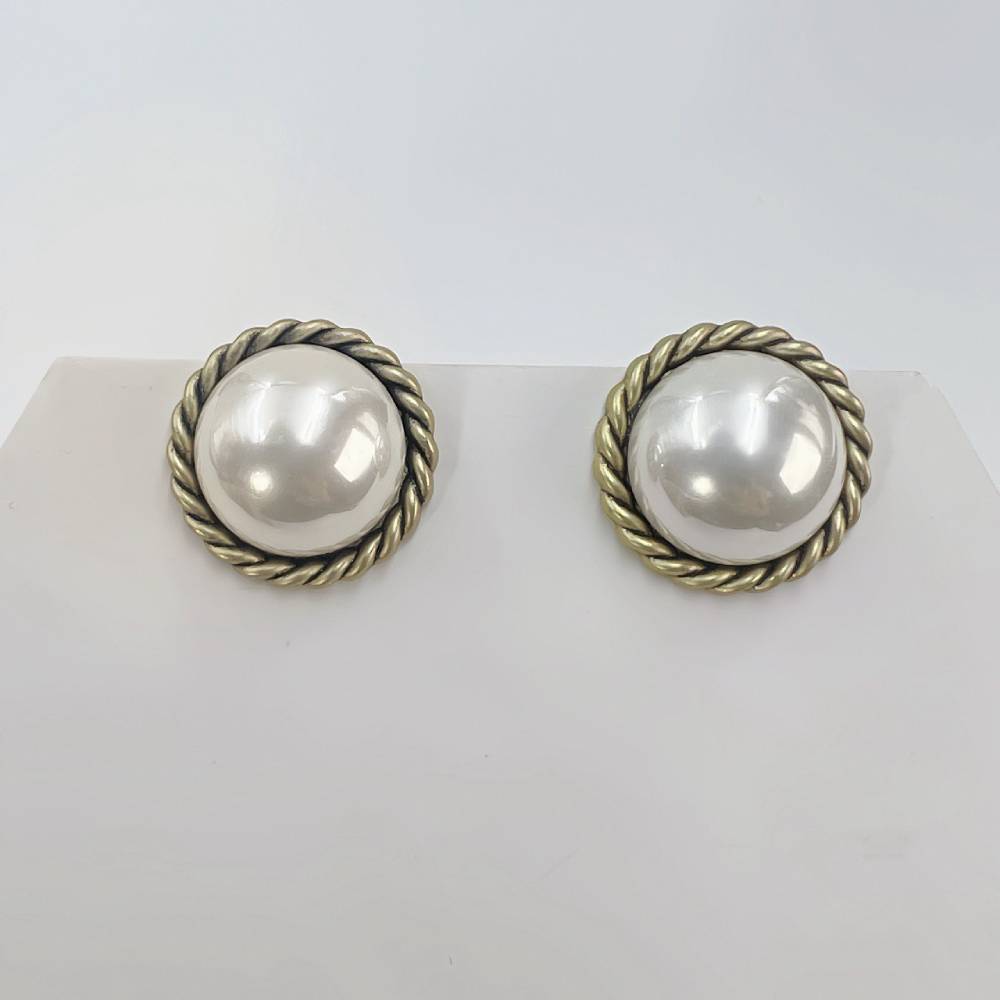 Ορειχάλκινα σκουλαρίκια σε σχέδιο ρετρό με resin pearl, φοριούνται εύκολα και άνετα καθ' όλη τη διάρκεια της μέρας.