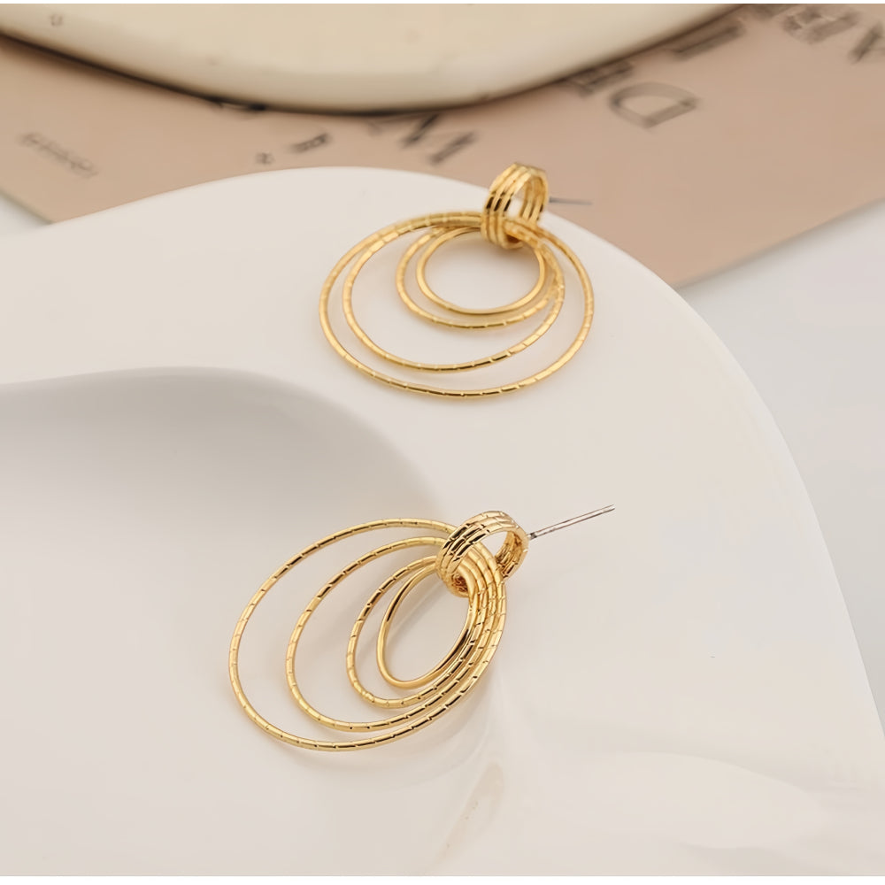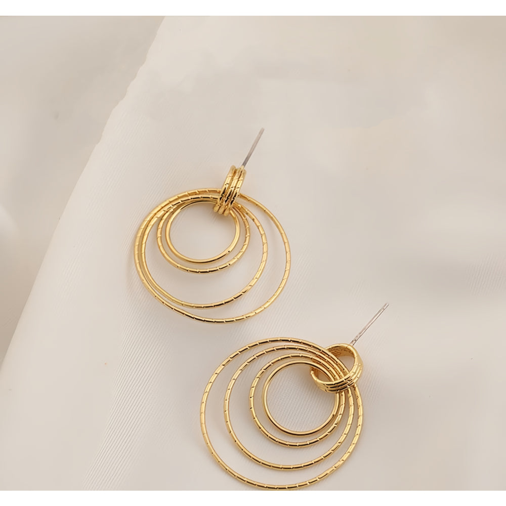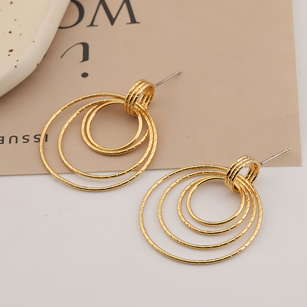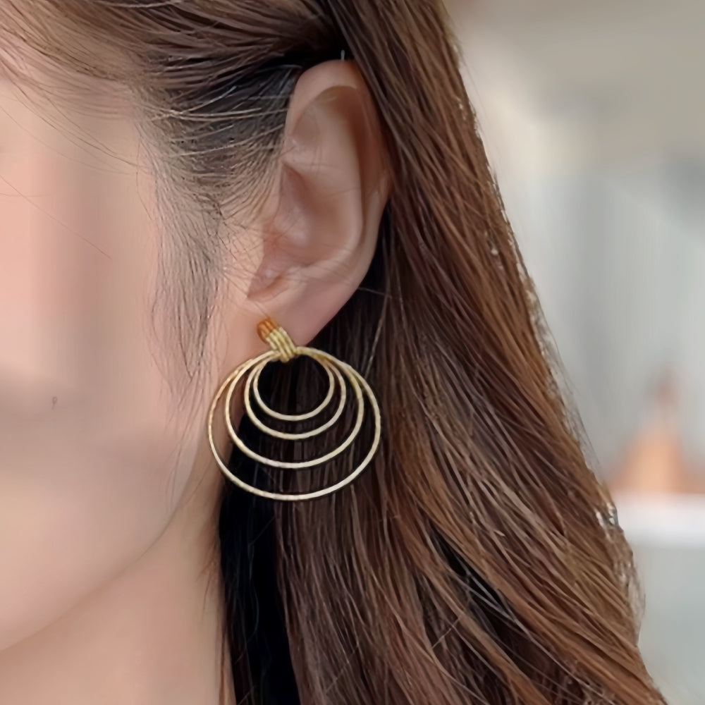 Σκουλαρίκια ορείχαλκου με τετραπλούς κρίκους που δίνουν ωραία κίνηση και προσθέτουν λάμψη και στυλ στην εμφάνισή σας.