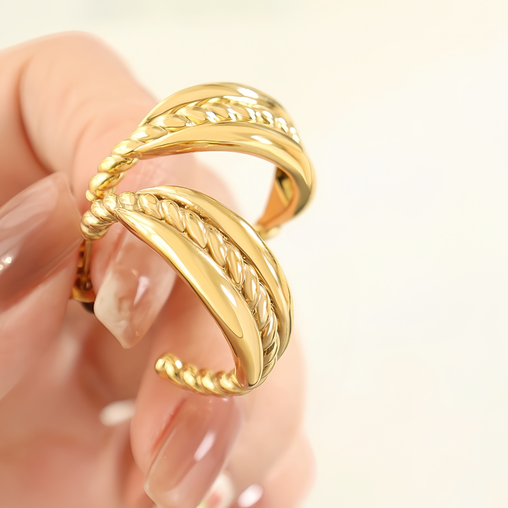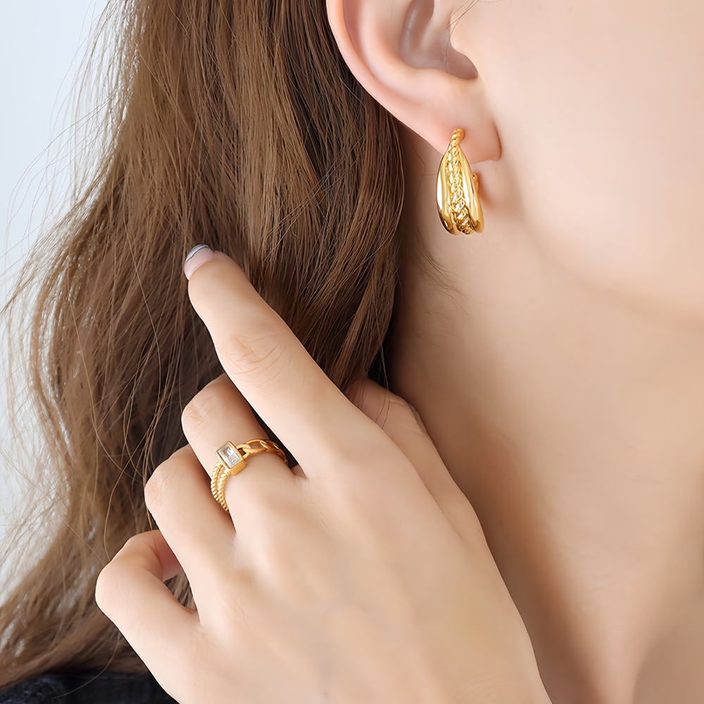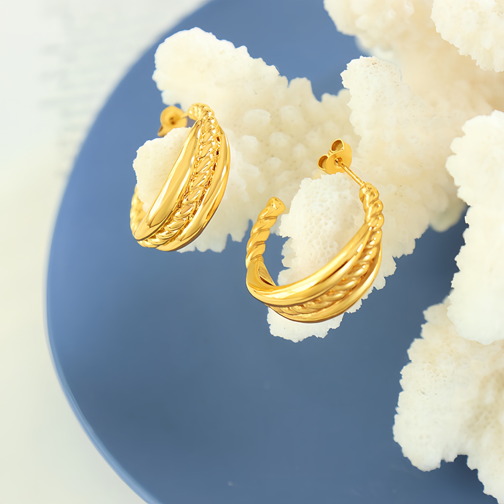 Κρίκοι από ορείχαλκο επιχρυσωμένο με 18Κ, σε ιδιαίτερο σχέδιο το οποίο συνδυάζετε περίφημα με άλλα κοσμήματα για να πετύχετε το απόλυτο ear combo.