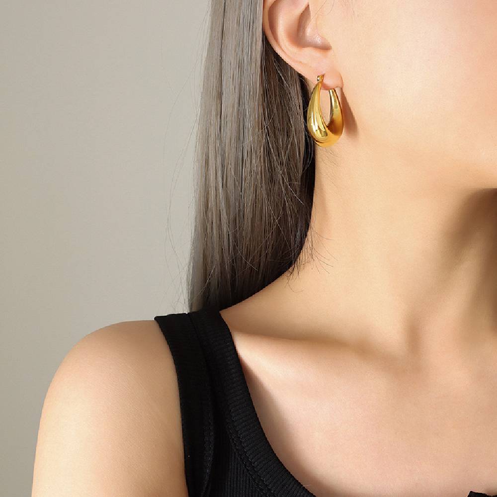 Σκουλαρίκια από ατσάλι επιχρυσωμένο σε σχήμα οβάλ για την τελειοποίηση της εμφάνισής σας. Είναι διαθέσιμο σε δύο μεγέθη, ιδανικό για συνδυασμούς με άλλα κοσμήματα. Φοριέται καθημερινά σε όλες τις περιστάσεις και απογειώνει το στιλ σας.