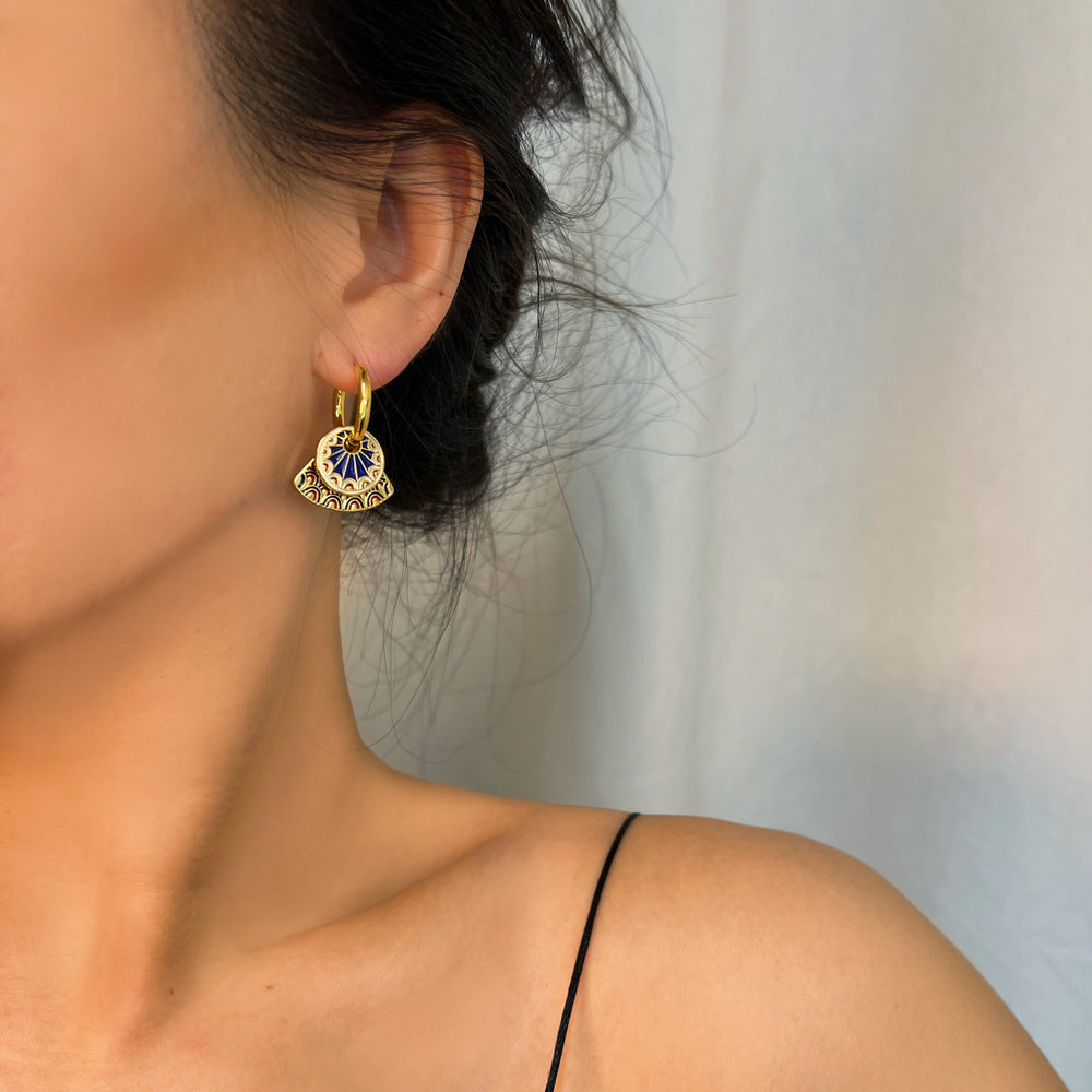 Εκπληκτικό ζευγάρι απο ορείχαλκο επιχρυσωμένο διακοσμημένα με σμάλτο σε όμορφα χρώματα. Ένα κομψό ζευγάρι σκουλαρίκια που μπορεί να φορεθεί όλες τις ώρες και να αναδείξει αρμονικά το outfit σας.
