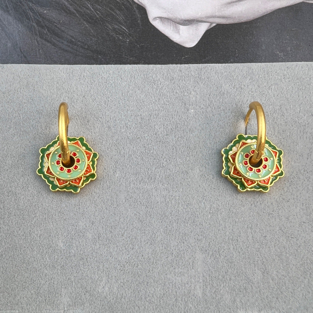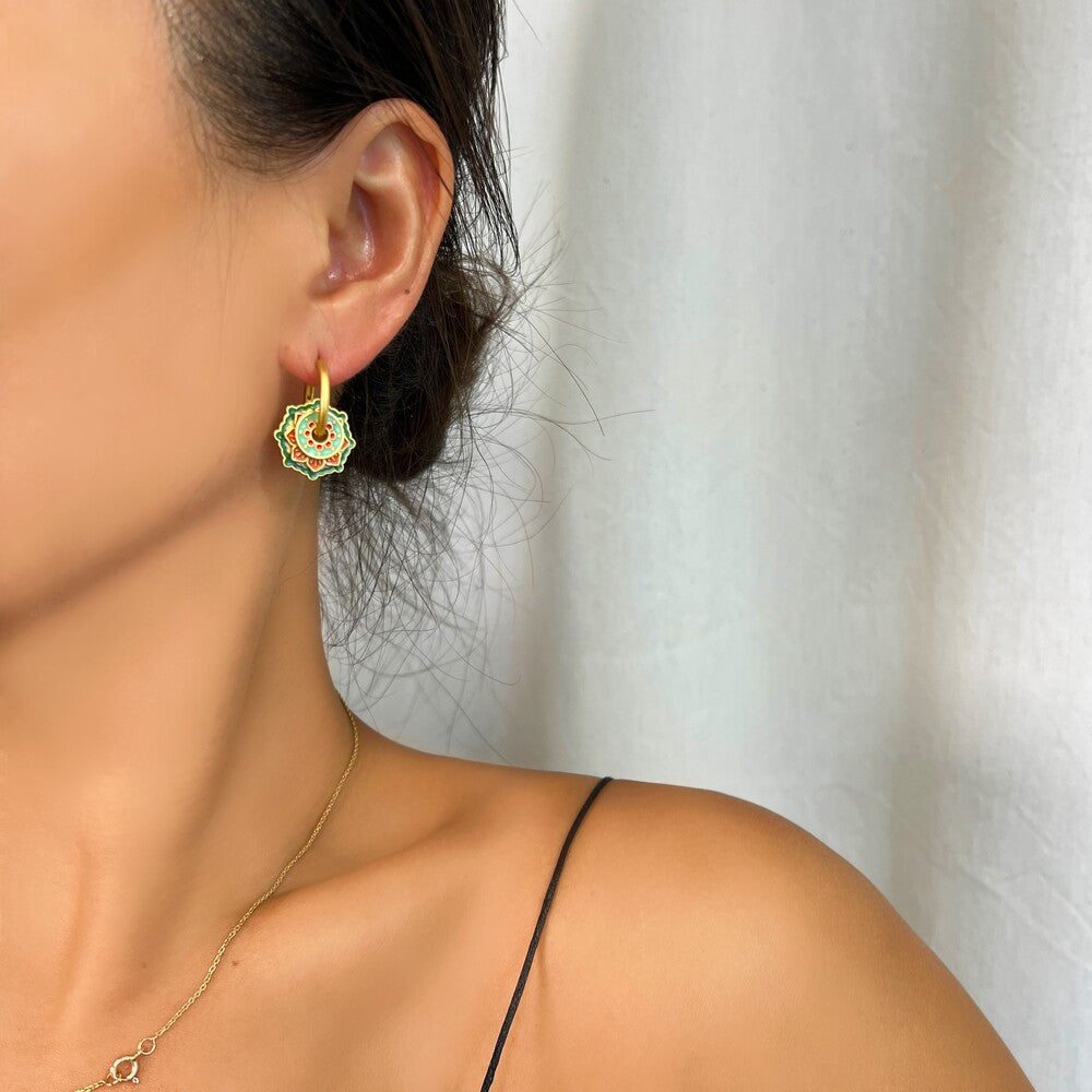 Εκπληκτικό ζευγάρι απο ορείχαλκο επιχρυσωμένο διακοσμημένα με σμάλτο σε όμορφα χρώματα. Ένα κομψό ζευγάρι σκουλαρίκια που μπορεί να φορεθεί όλες τις ώρες και να αναδείξει αρμονικά το outfit σας.