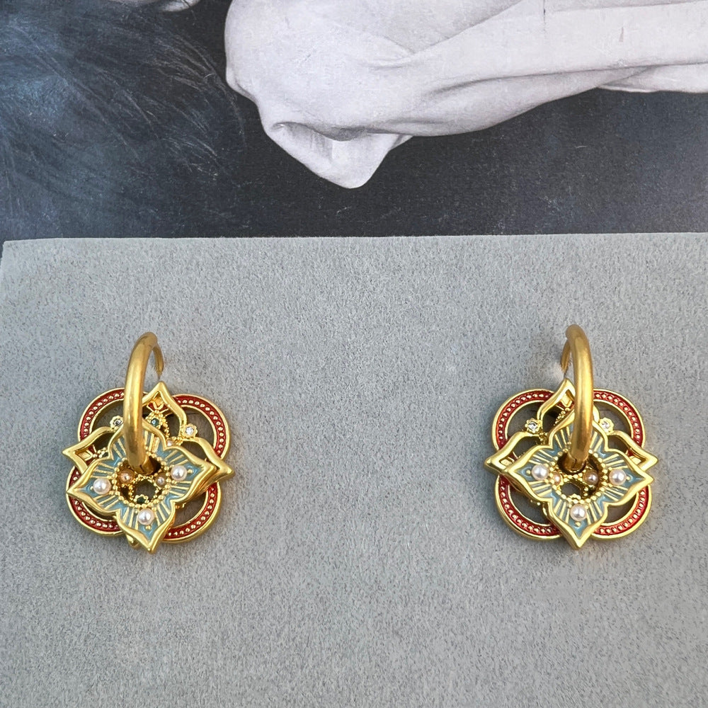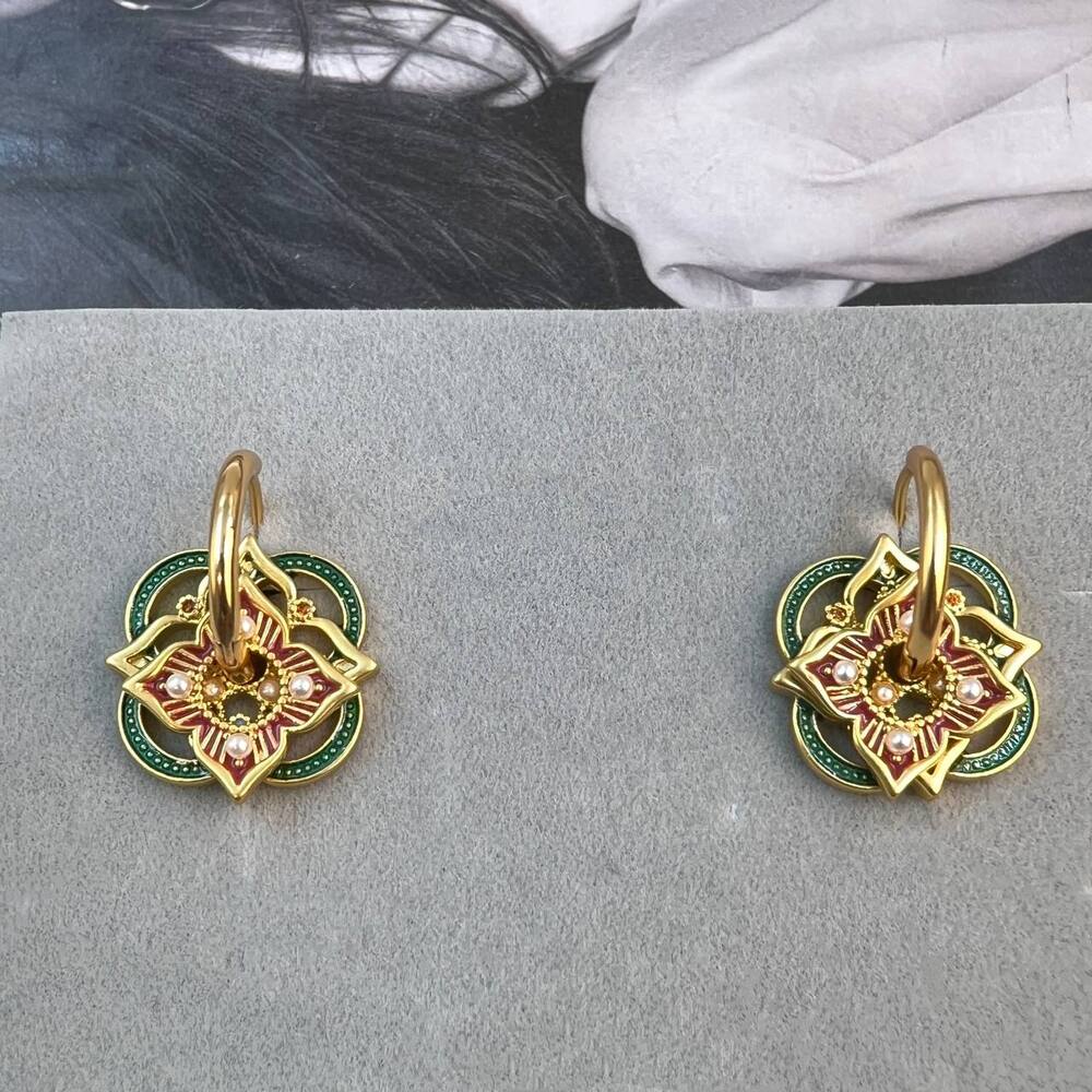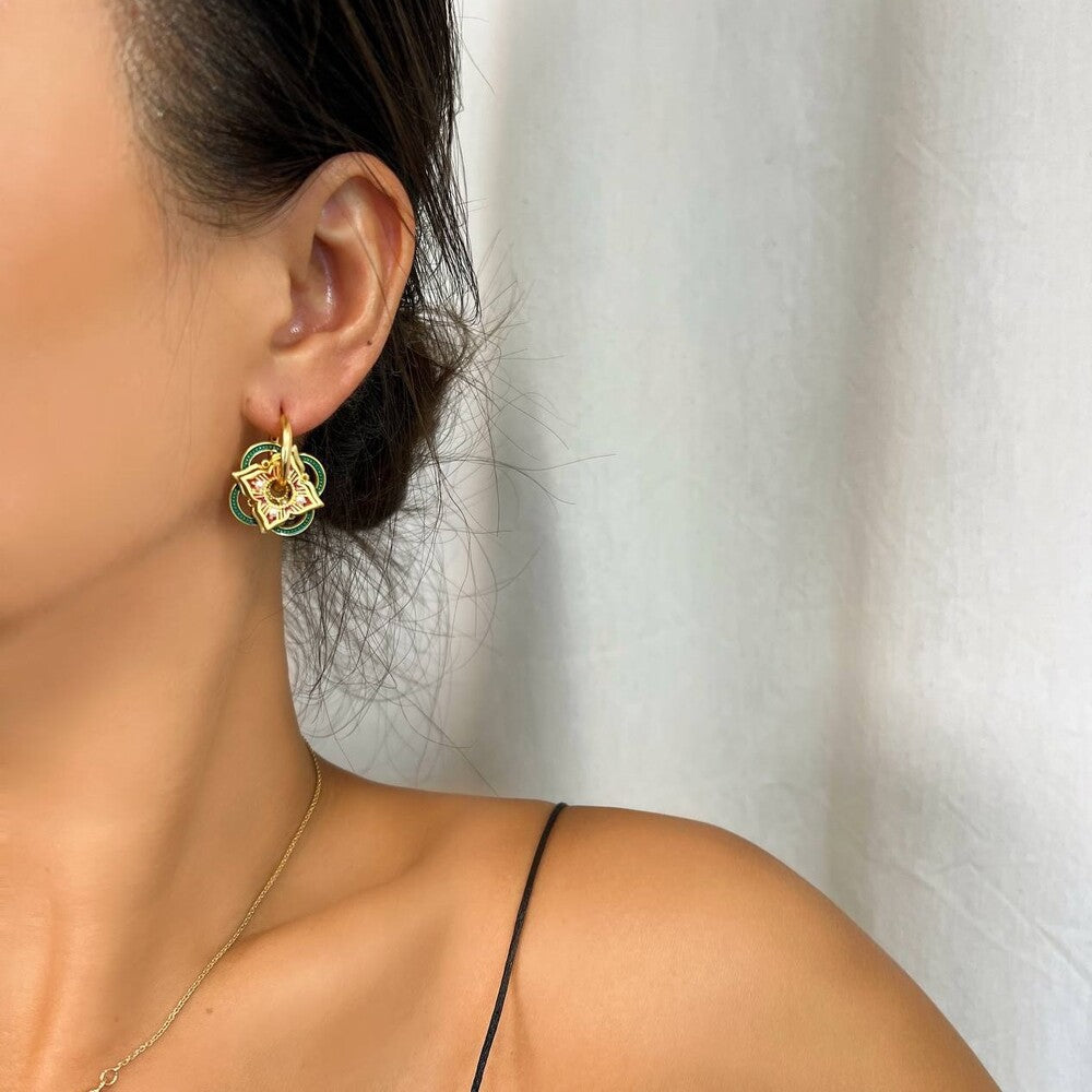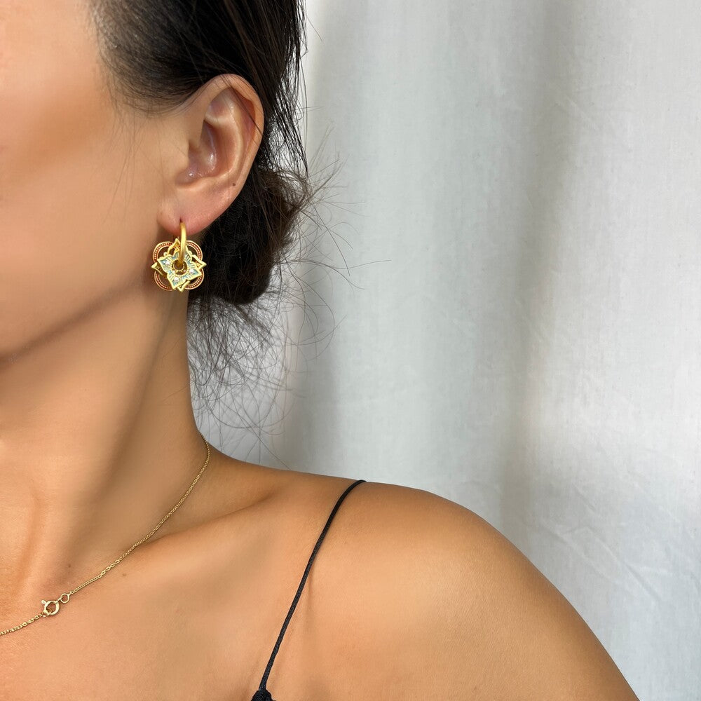 Εκπληκτικό ζευγάρι απο ορείχαλκο επιχρυσωμένο διακοσμημένα με σμάλτο σε όμορφα χρώματα. Ένα κομψό ζευγάρι σκουλαρίκια που μπορεί να φορεθεί όλες τις ώρες και να αναδείξει αρμονικά το outfit σας.