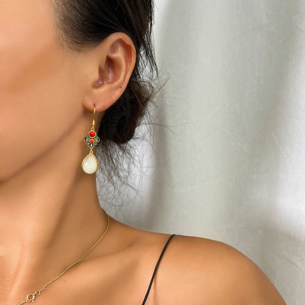 Κρεμαστό ζευγάρι σκουλαρίκια απο ορείχαλκο επιχρυσωμένο διακοσμημένα με σμάλτο σε όμορφα χρώματα. Ένα κομψό ζευγάρι σκουλαρίκια που μπορεί να φορεθεί όλες τις ώρες και να αναδείξει αρμονικά το outfit σας.