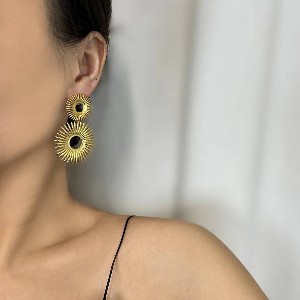 Ένα υπέροχο ζευγάρι κρεμαστά σκουλαρίκια κρίκοι με σχέδιο sunflower. Το κούμπωμα του είναι από ατσάλι επιχρυσωμένο που δεν προκαλεί αλλεργίες.