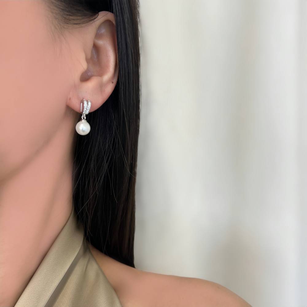 Ασημένια σκουλαρίκια, με ζιργκόν που προσδίδουν την ιδανική λάμψη και μαργαριτάρια που του δίνουν κομψότητα. Συνδυάστε τα με το κολιέ της ίδιας συλλογής.