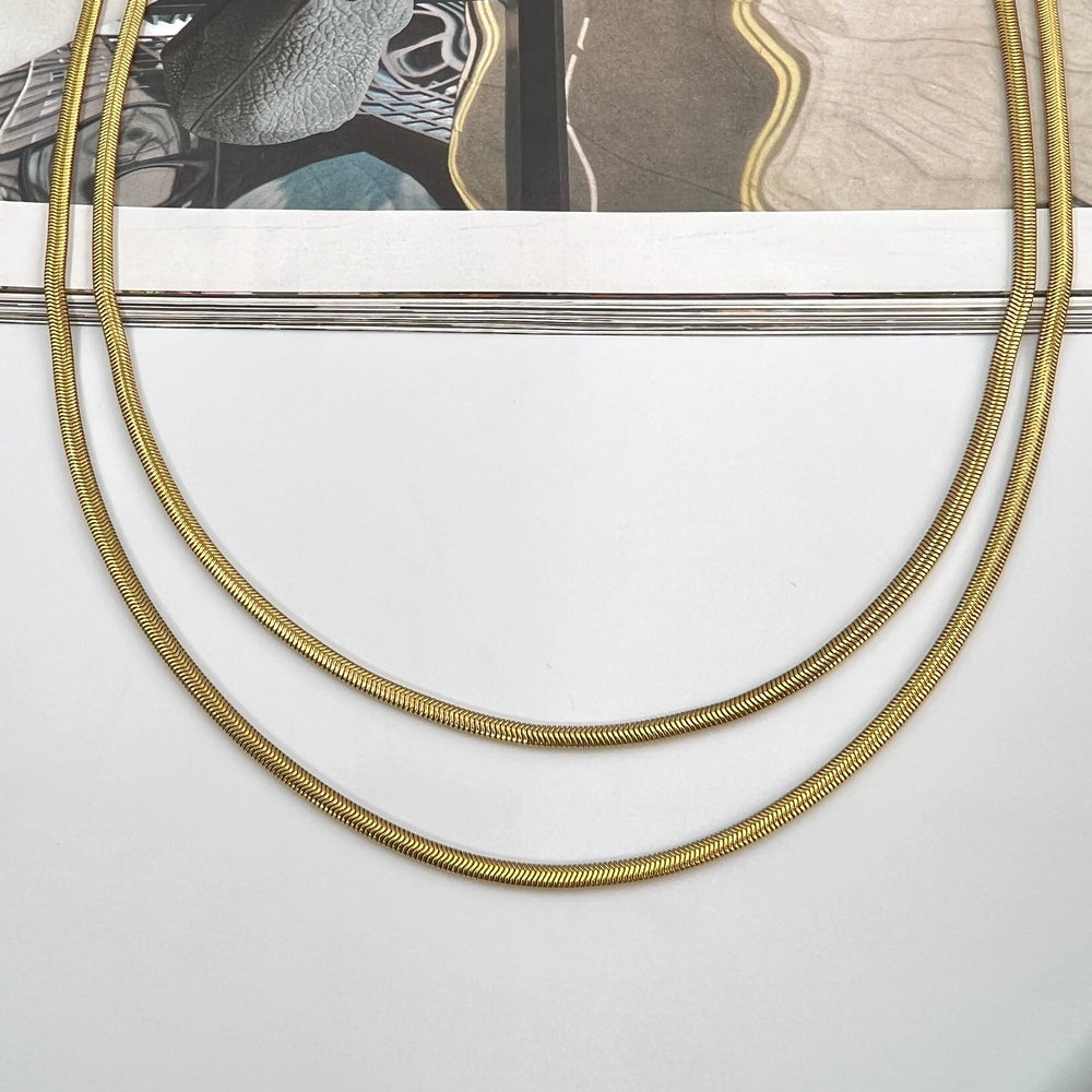 Κολιέ από ατσάλι επιχρυσωμένο 18Κ με διπλή αλυσίδα. Εξαιρετικό κολιέ διαχρονικό, που δίνει μια έξτρα πινελία στο outfit μας και αναδυκνύει τις εμφανίσεις μας.