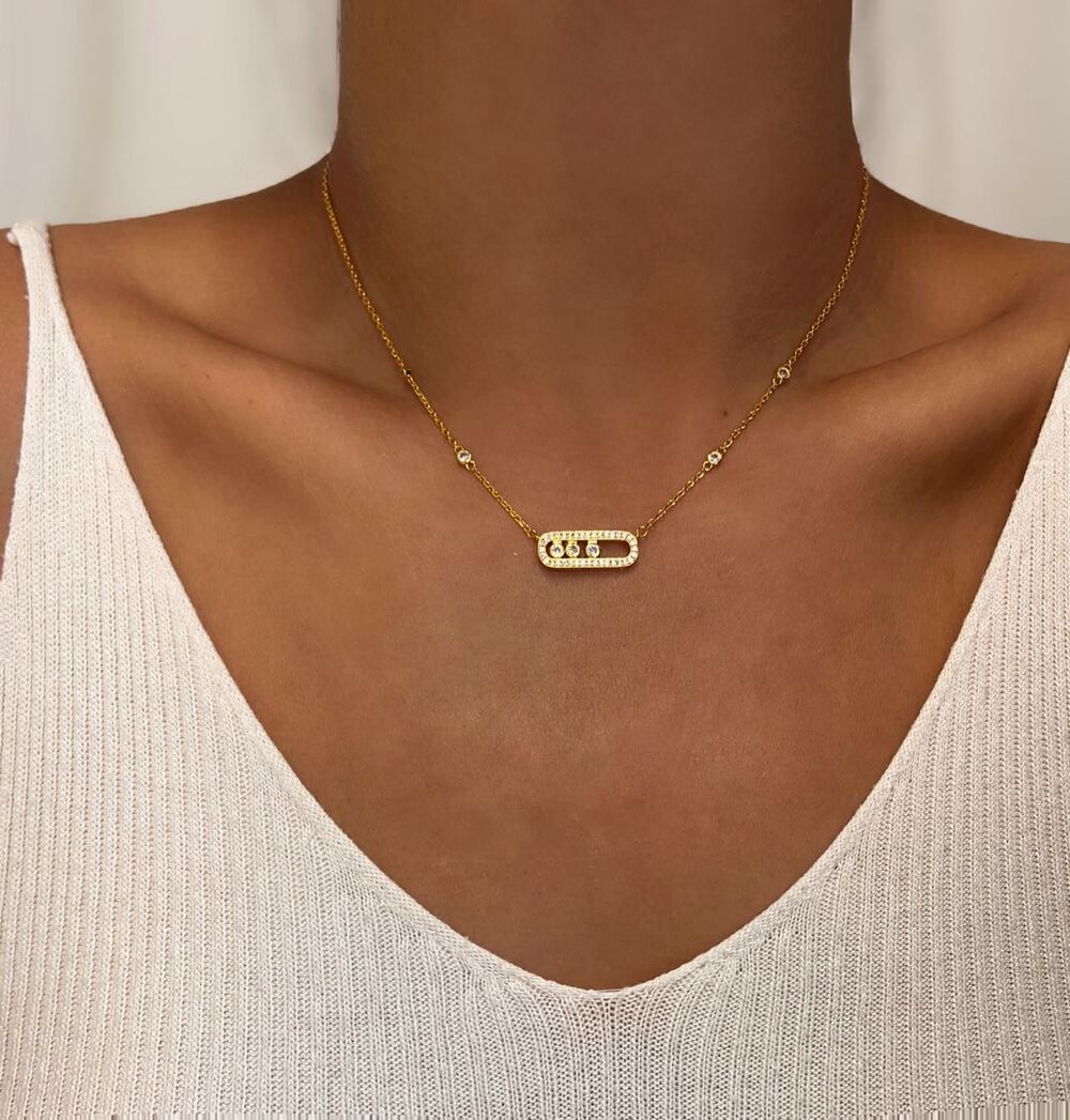 Κολιέ από ατσάλι επιχρυσωμένο 18Κ. Είναι διακοσμημένο με ζιργκόν. Εξαιρετικό κολιέ που μπορεί να αναδείξει περίφημα τα outfit σας. Συνοδεύεται πολύ όμορφα με τα σκουλαρίκια της ίδιας συλλογής κωδικός BESCE0756.