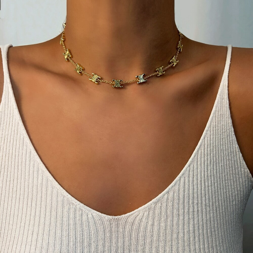 Όμορφο κολιέ από ατσάλι επιχρυσωμένο 18Κ. Μπορεί να αναδείξει περίφημα τα outfit σας με μια πινελία κομψότητας.