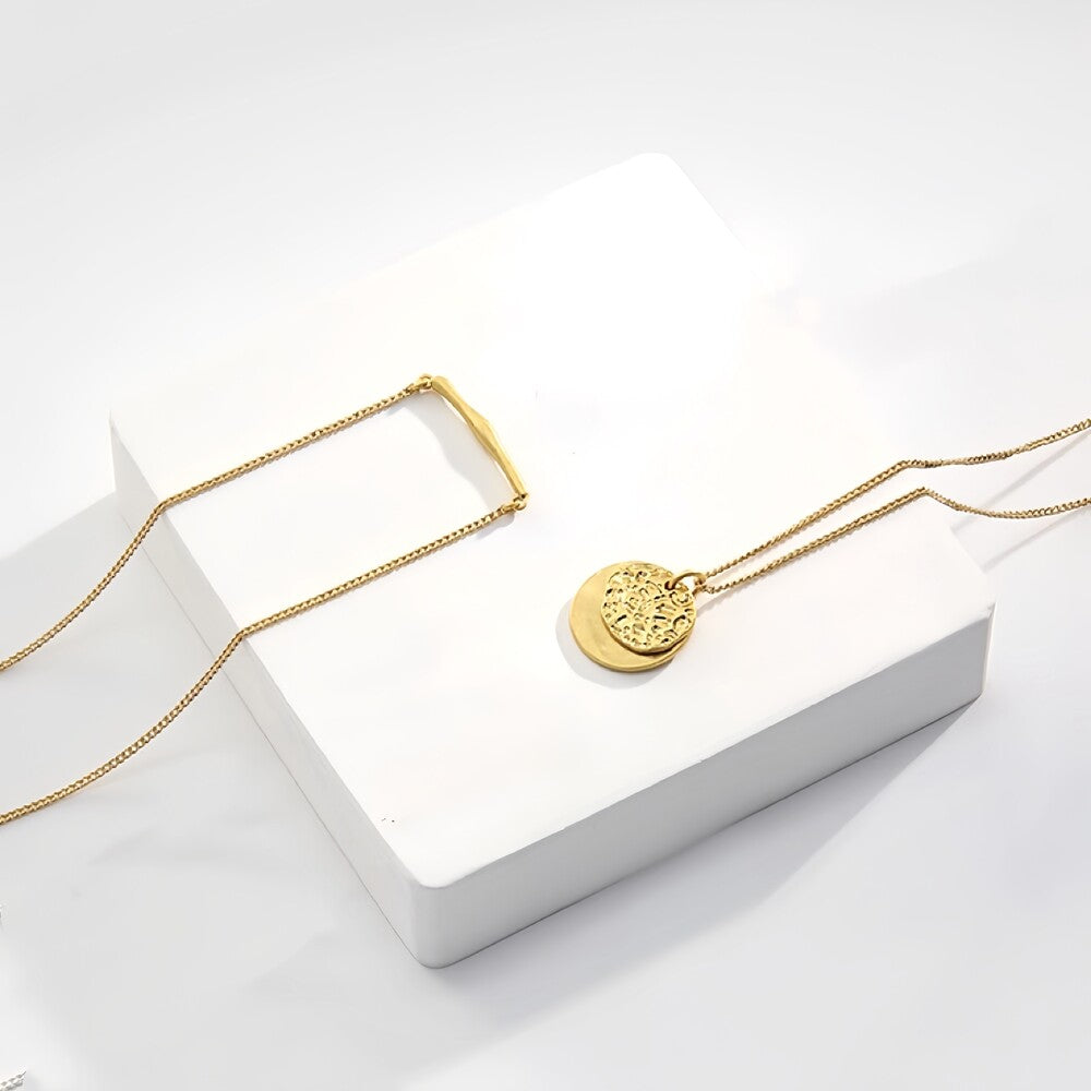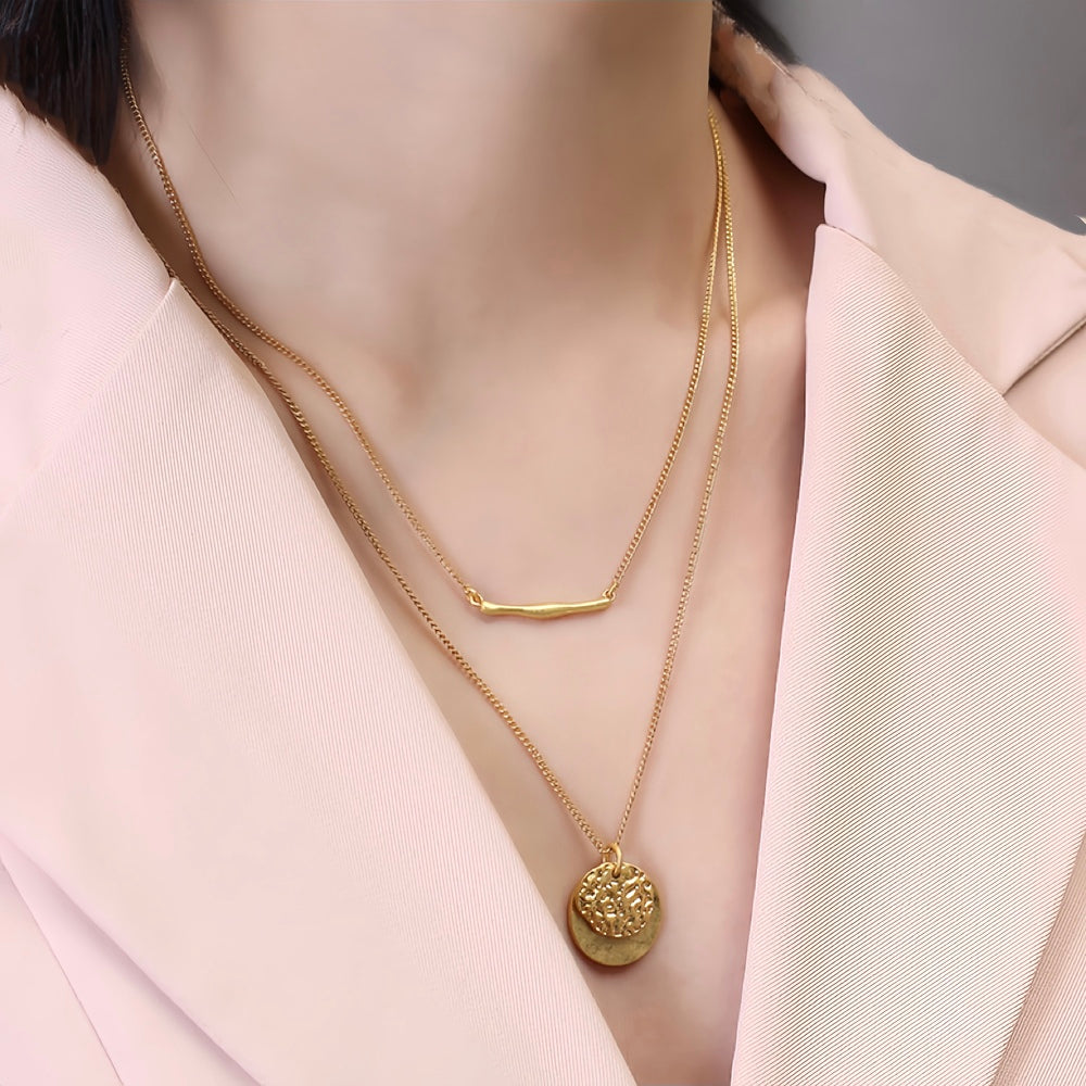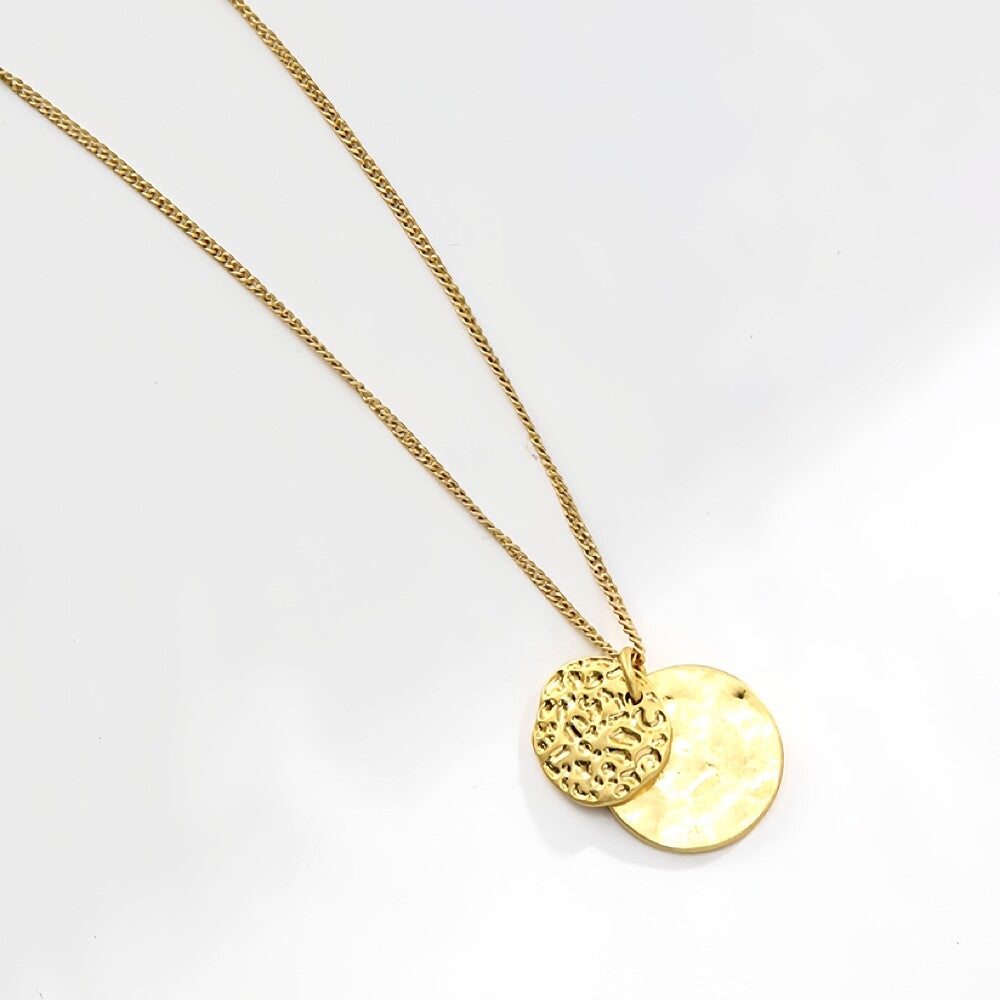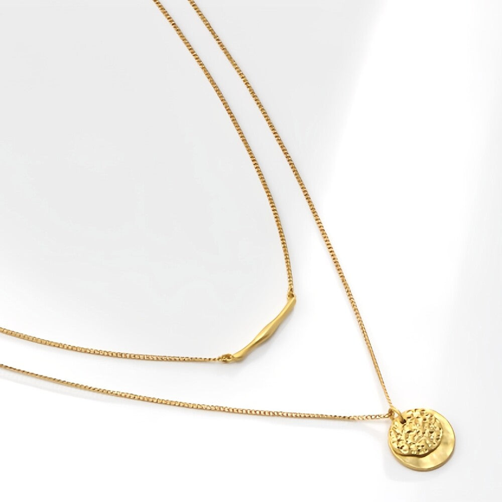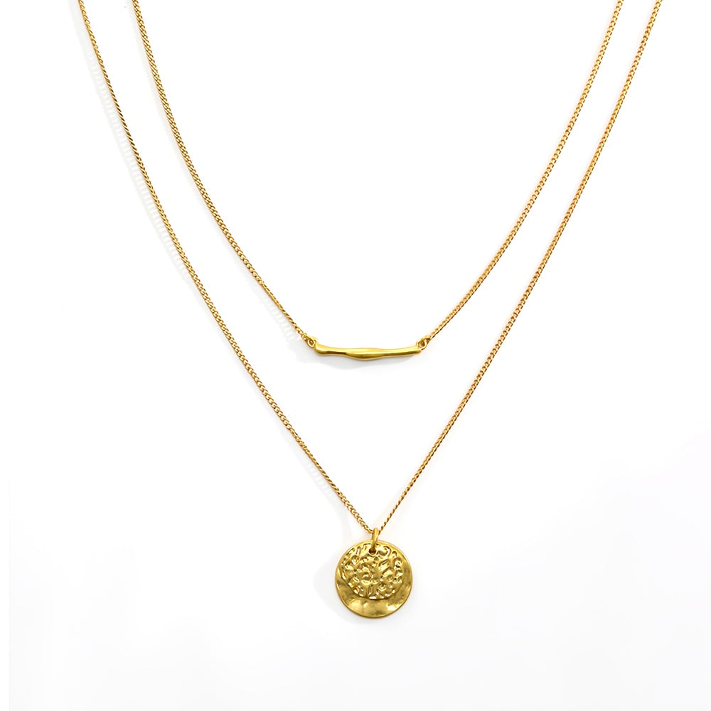 Κολιέ ορείχαλκου επιχρυσωμένου με διπλή αλυσίδα για να τις συνδυάζετε ή και να τις φοράτε μεμονωμένες. Με μενταγιόν από ορείχαλκο επιχρυσωμένο.