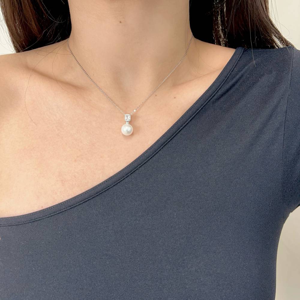 Υπέρκομψο κολιέ από ασημί με ζιργκόν και μαργαριτάρι στο κέντρο του. Φίνο και διαχρονικό κόσμημα, μπορείτε να το φοράτε όλες τις ώρες της μέρας και να συνοδεύει όλες σας τις εμφανίσεις.